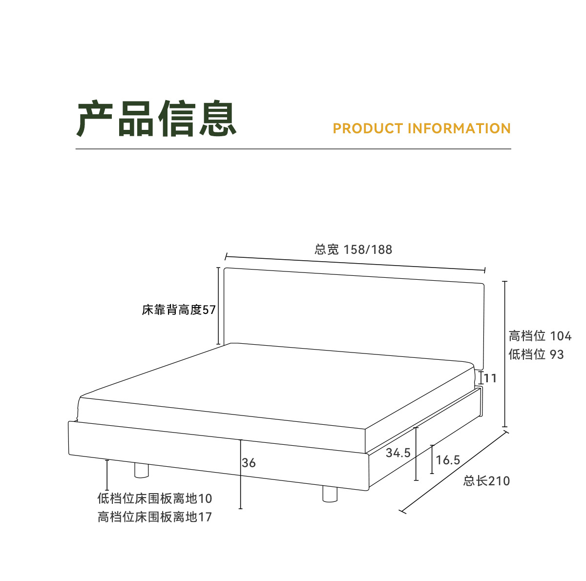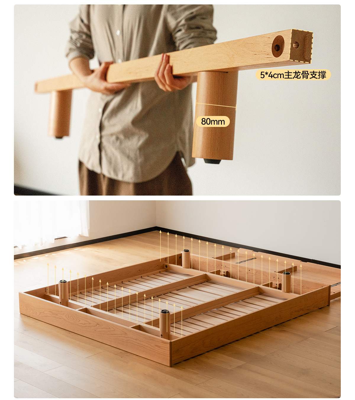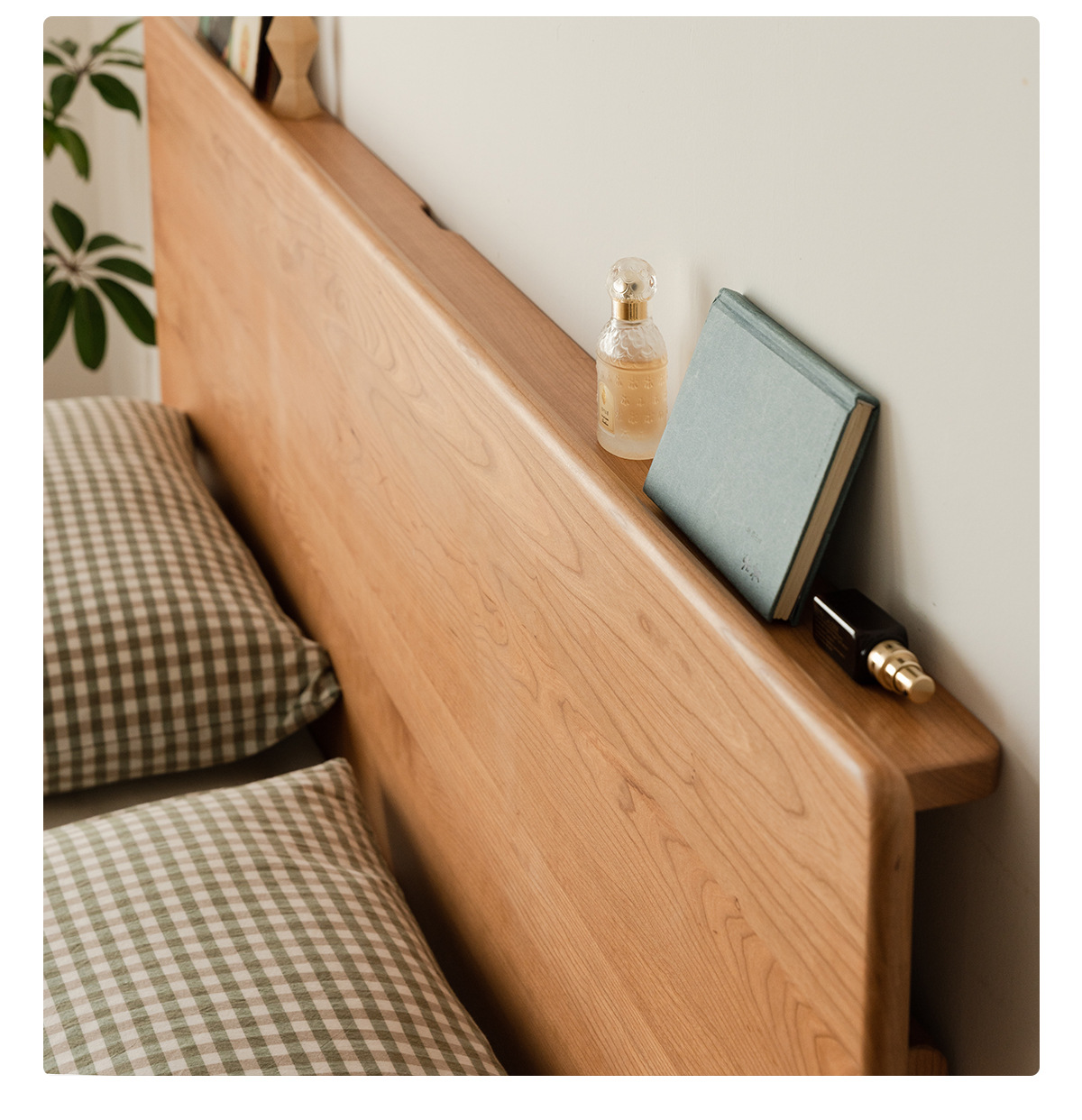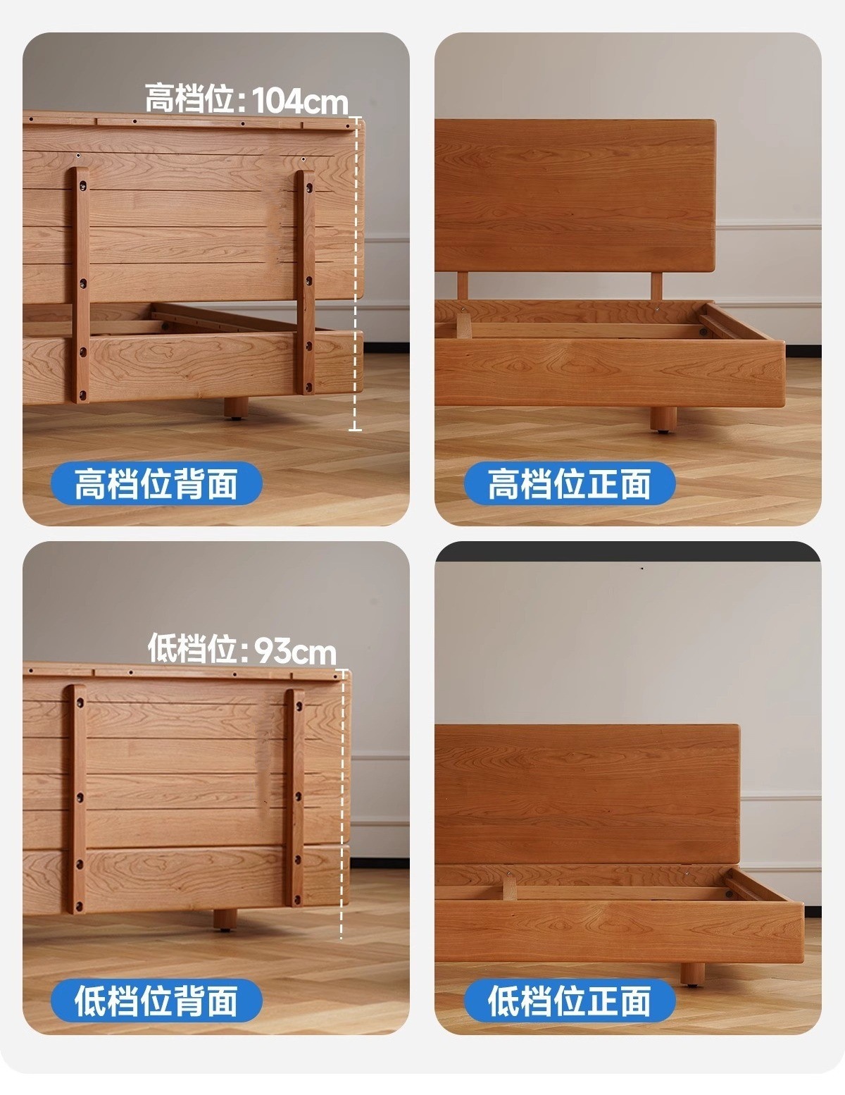 홍양 가구 북유럽 단단한 나무 침대 심플 1.5 m 싱글 체리 우드 일본 통나무 1.8 m 더블 서스펜션 침대