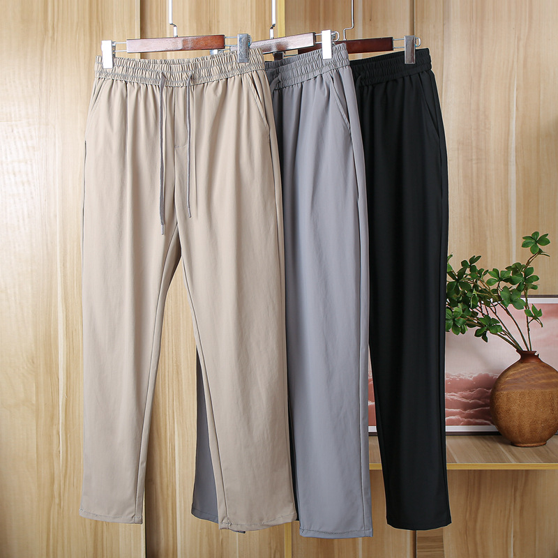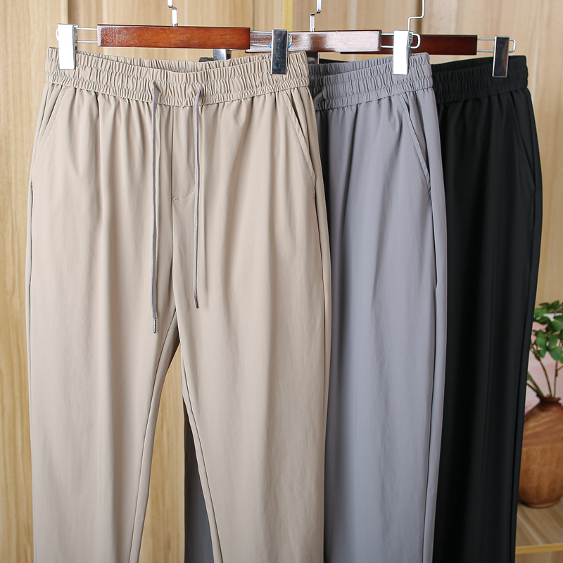 -5 도! 시원한 느낌 가득! 가벼운 고급 캐비닛 상품 컷 지폐! 남성용 고탄력 단색 여름 속건 플러스 사이즈 스트레이트 팬츠
