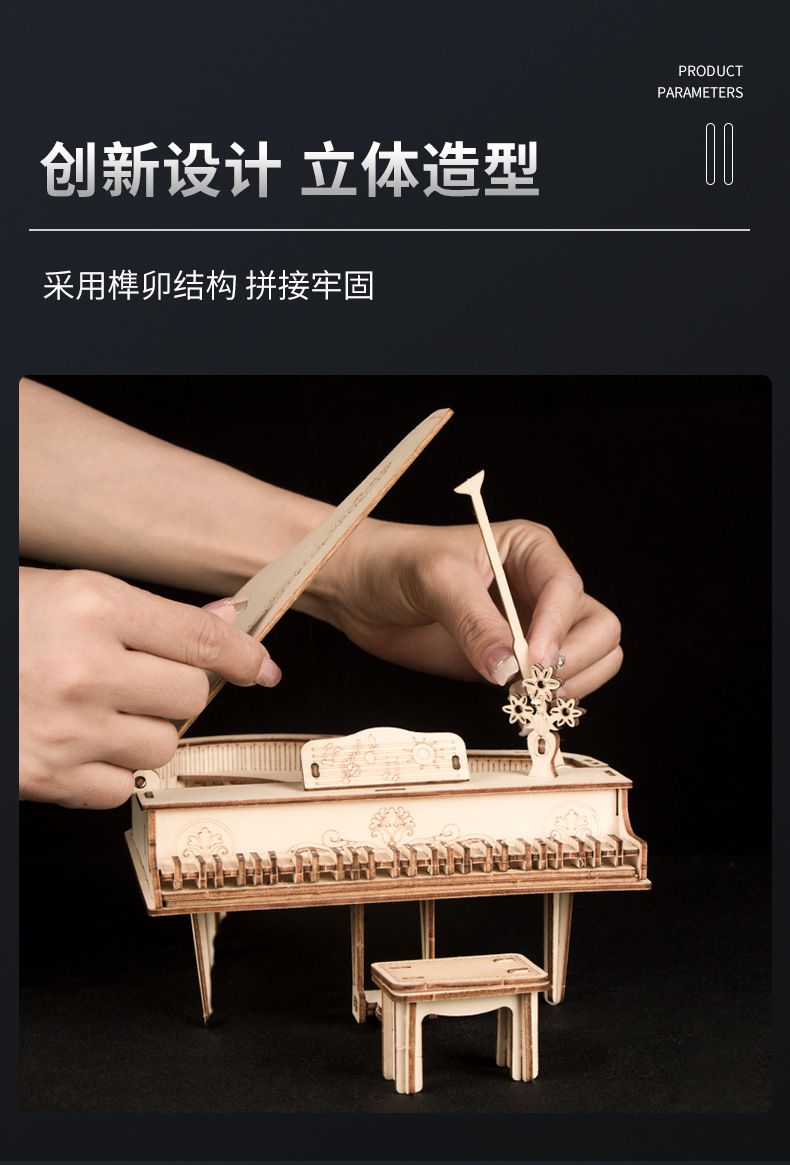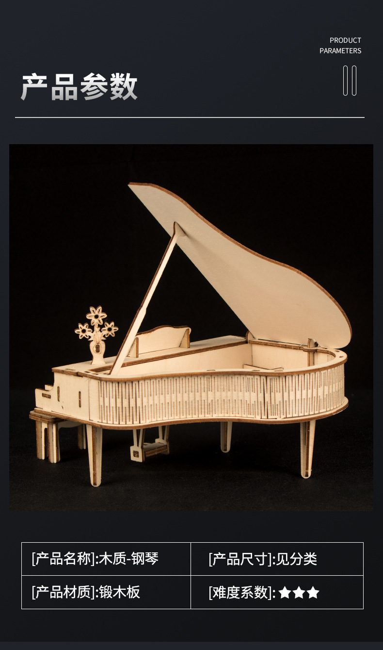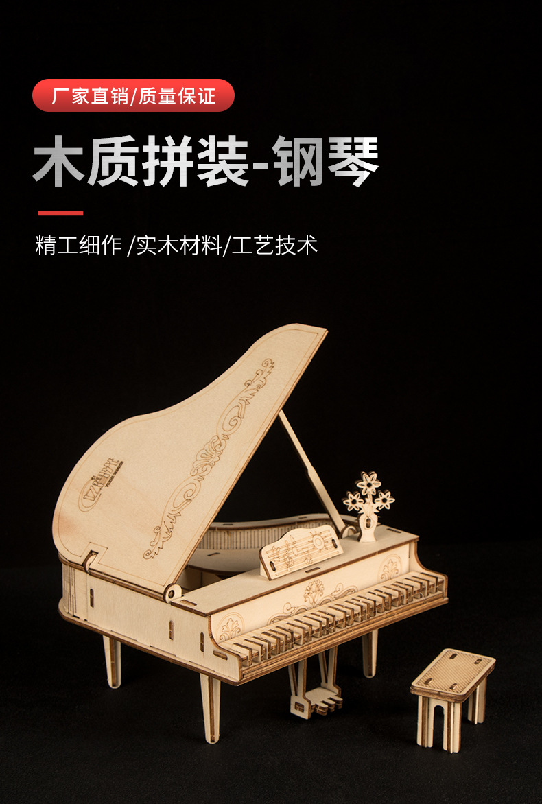 나무 3 차원 퍼즐 수제 DIY 빌딩 블록 장난감 창의적 과학 및 교육 시뮬레이션 모델 조립 교육용 피아노 장식품스토어 가기