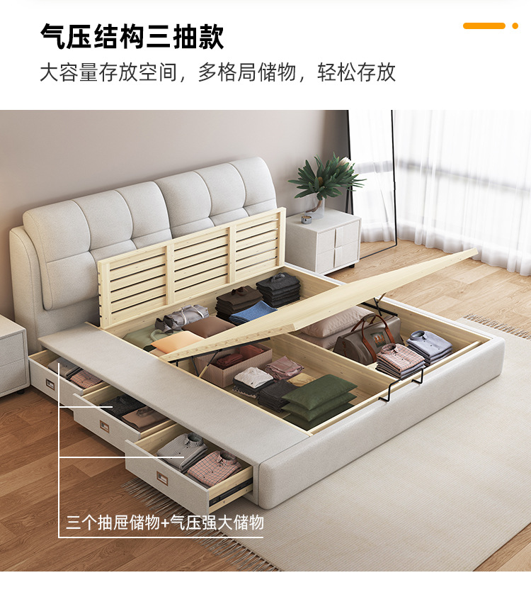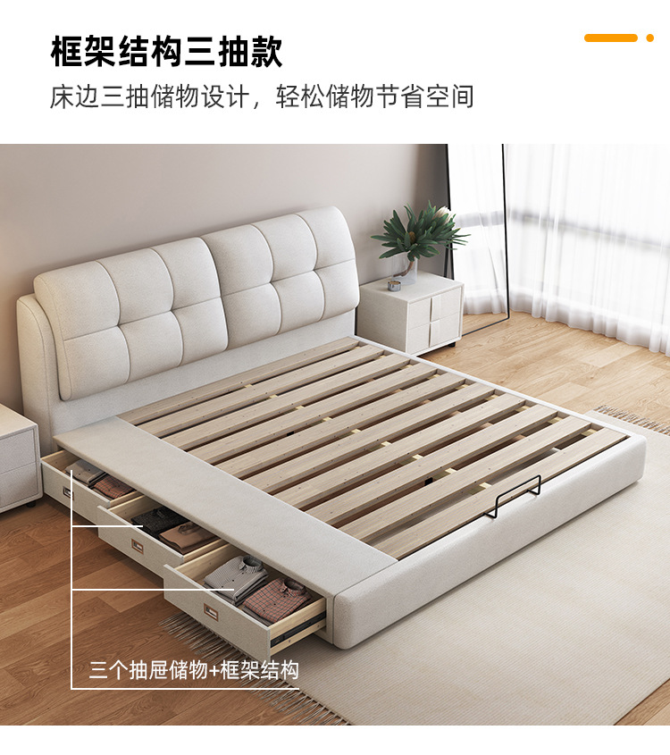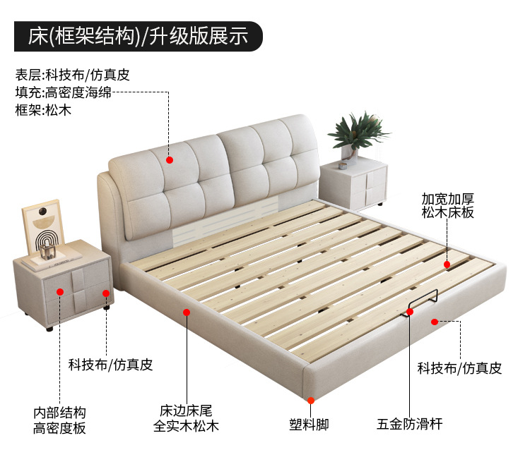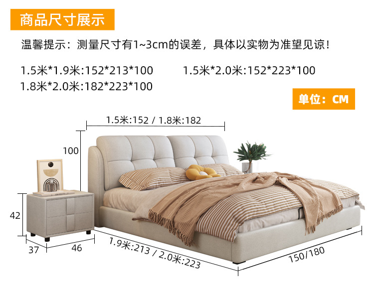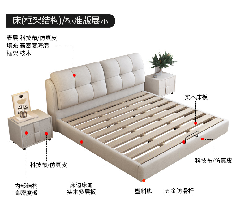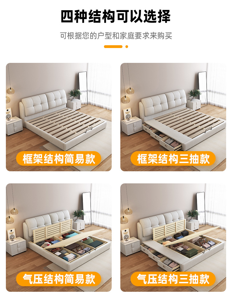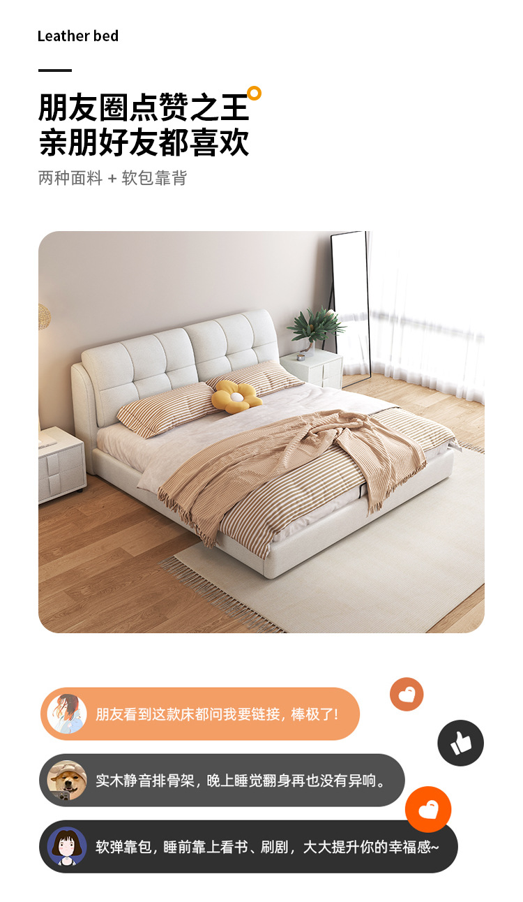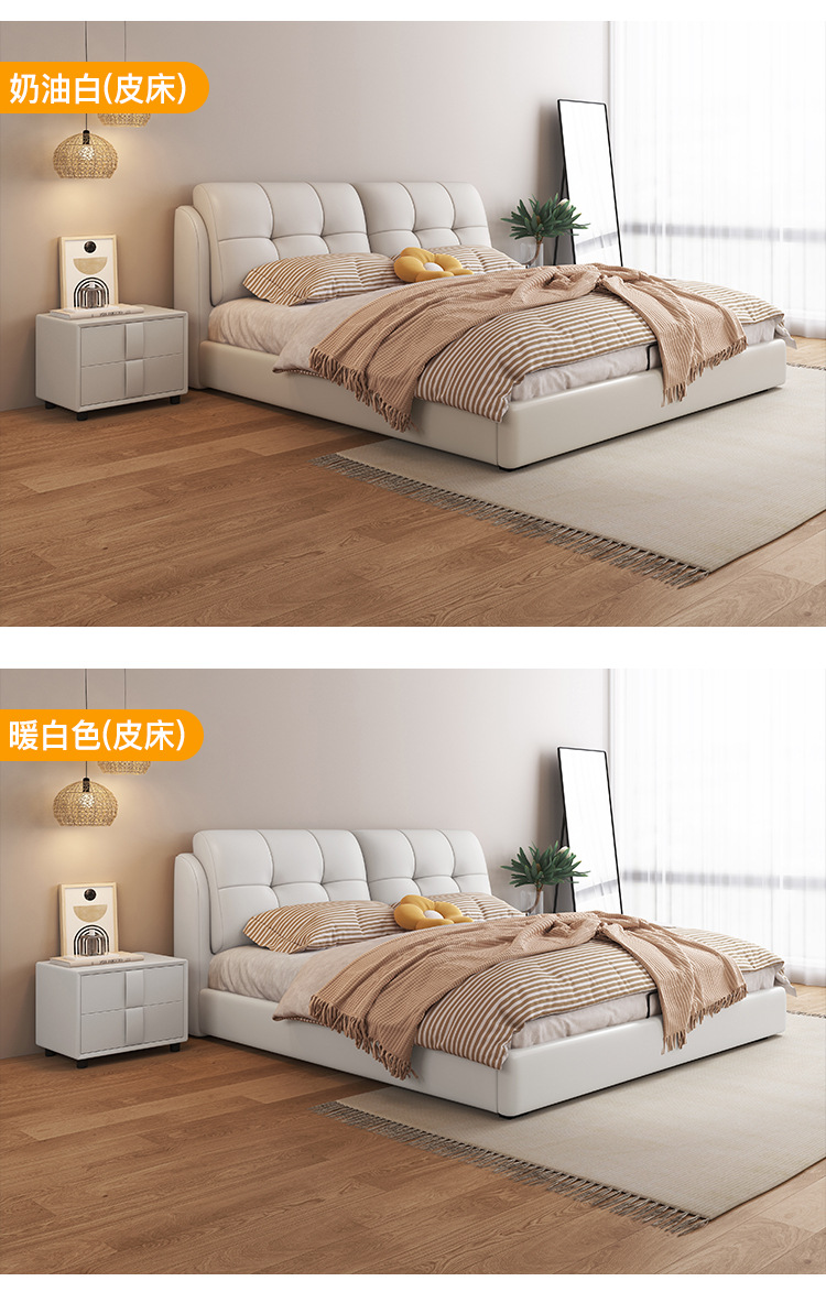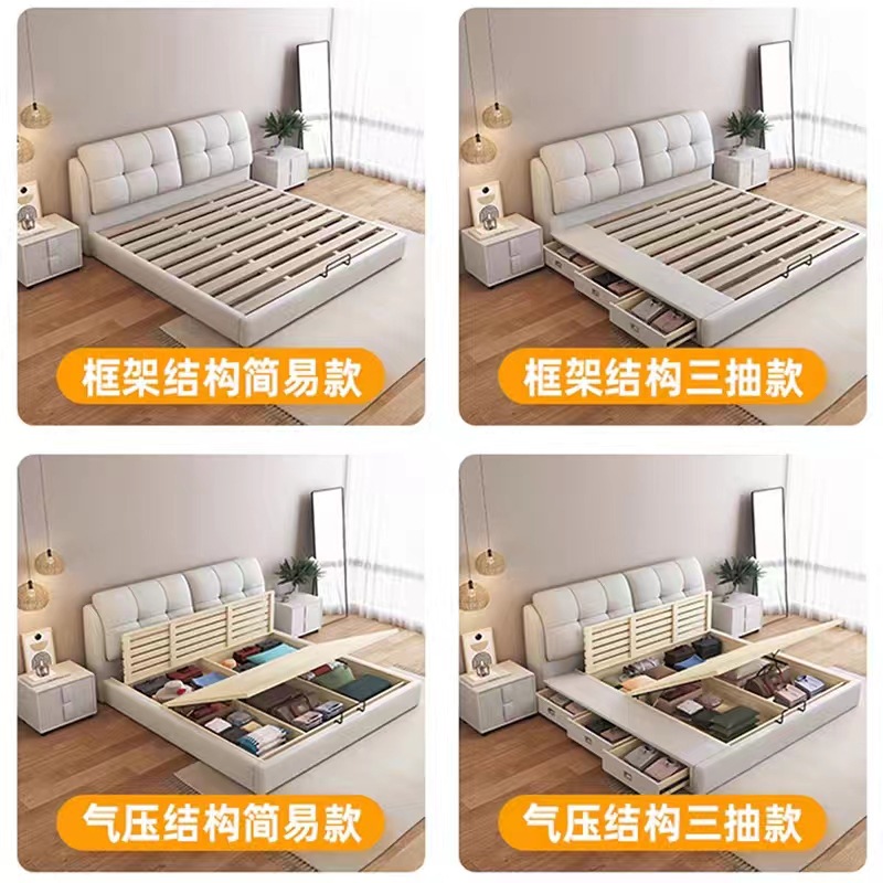 가죽 침대 더블 1.8 m 크림 스타일 마스터 침실 북유럽 이탈리아 라이트 럭셔리 웨딩 침대 2 m 큰 침대 인스 타 그램 간단한 가죽 침대스토어 가기