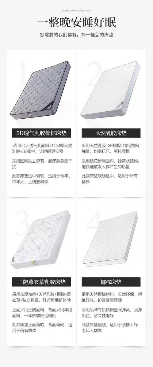 • 침대 + 5D 라텍스 매트리스 + 1 캐비닛