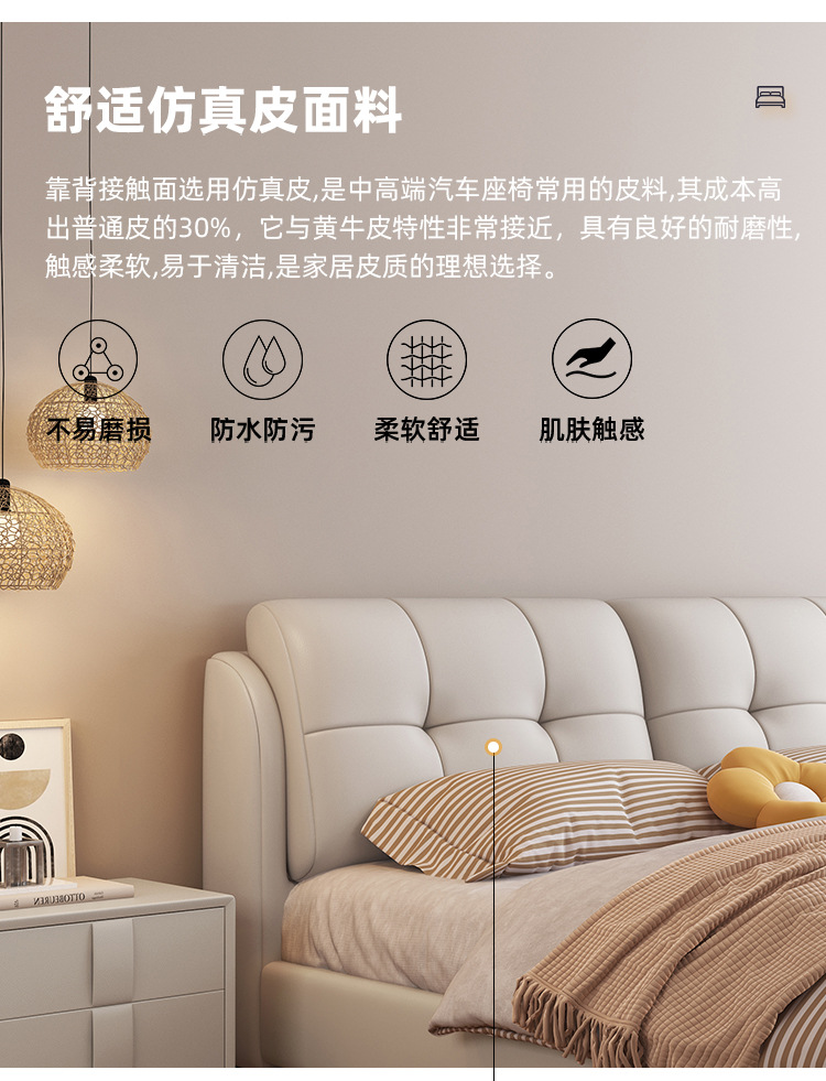 가죽 침대 더블 1.8 m 크림 스타일 마스터 침실 북유럽 이탈리아 라이트 럭셔리 웨딩 침대 2 m 큰 침대 인스 타 그램 간단한 가죽 침대
