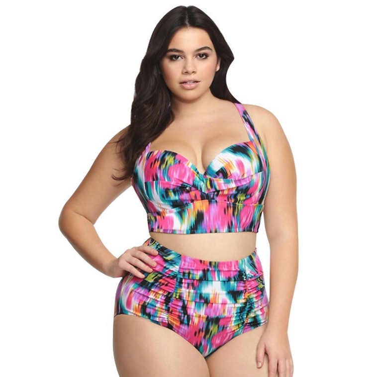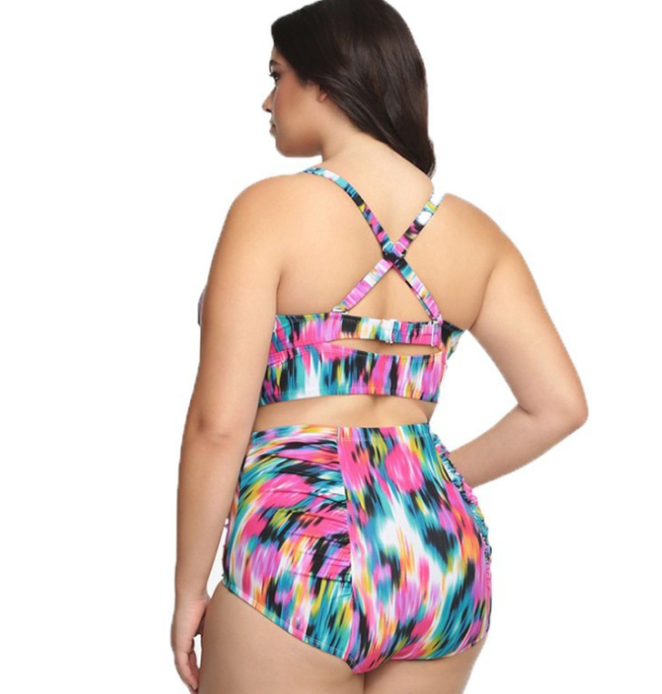 유럽과 미국의 새로운 플러스 사이즈 비키니 수영복 인쇄 플러스 사이즈 높은 허리 지방 여자 비키니 수영복
