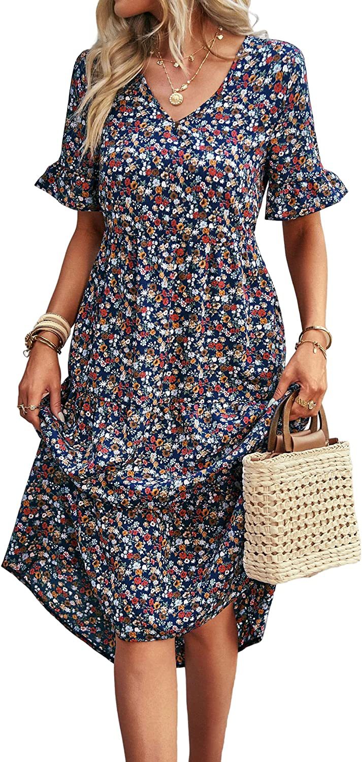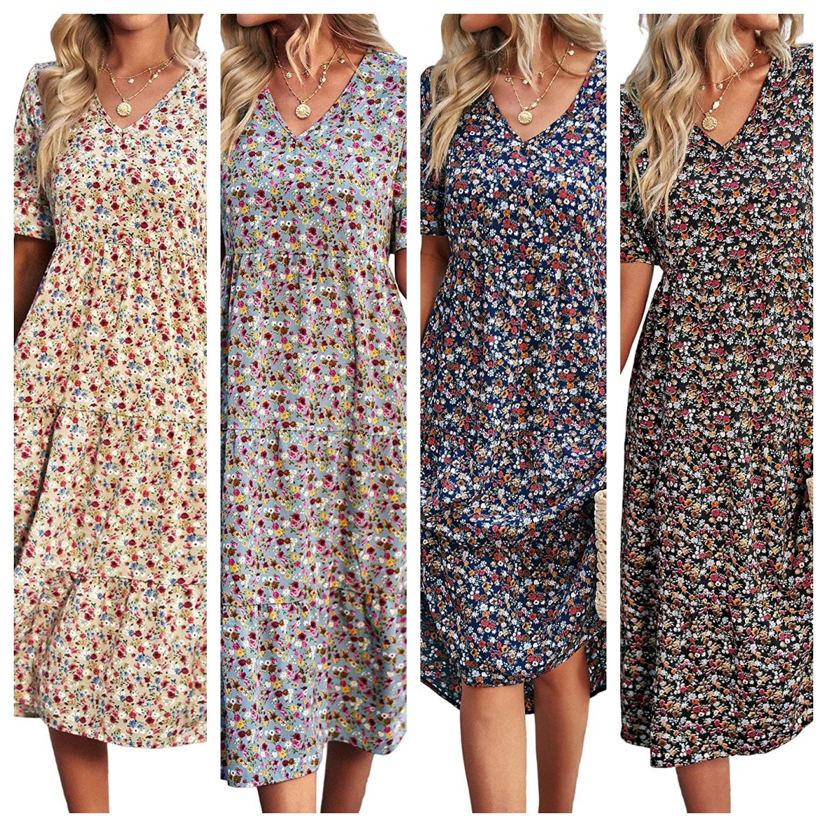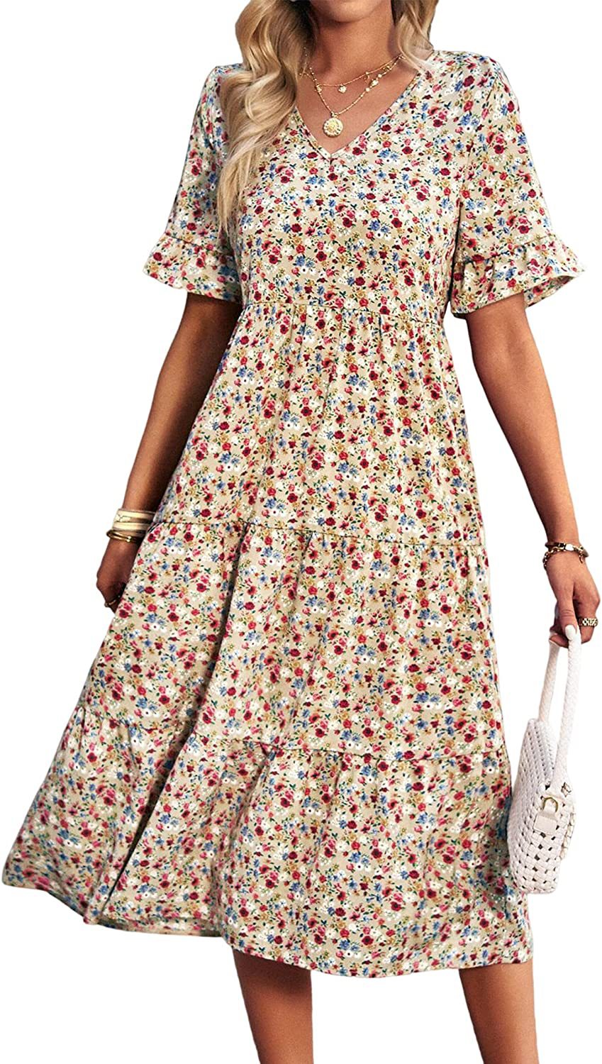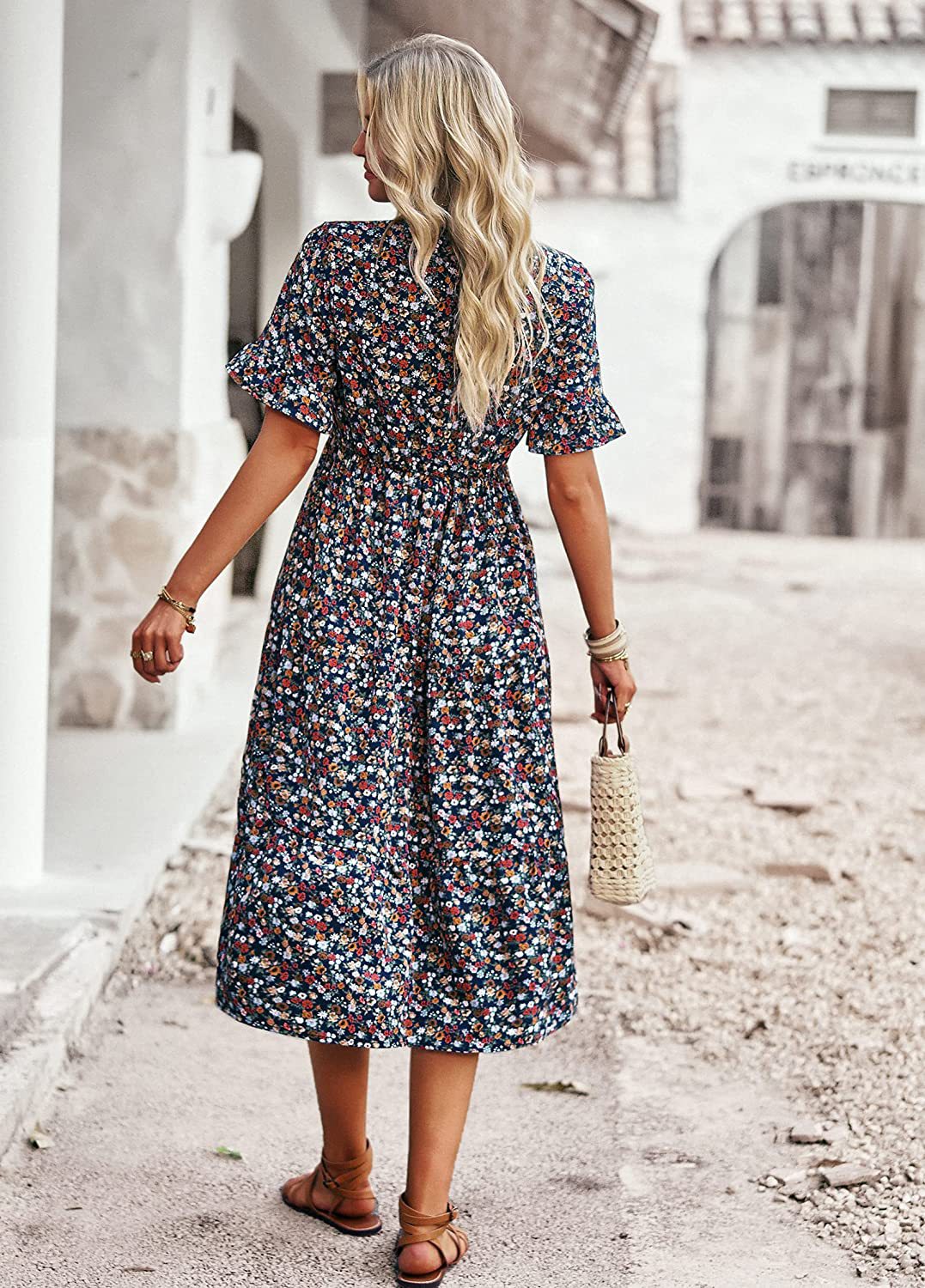 아마존 2023 여름 꽃 긴 원피스 캐주얼 보헤미안 V-넥 짧은 소매 우아한 해변 긴 태양 원피스스토어 가기