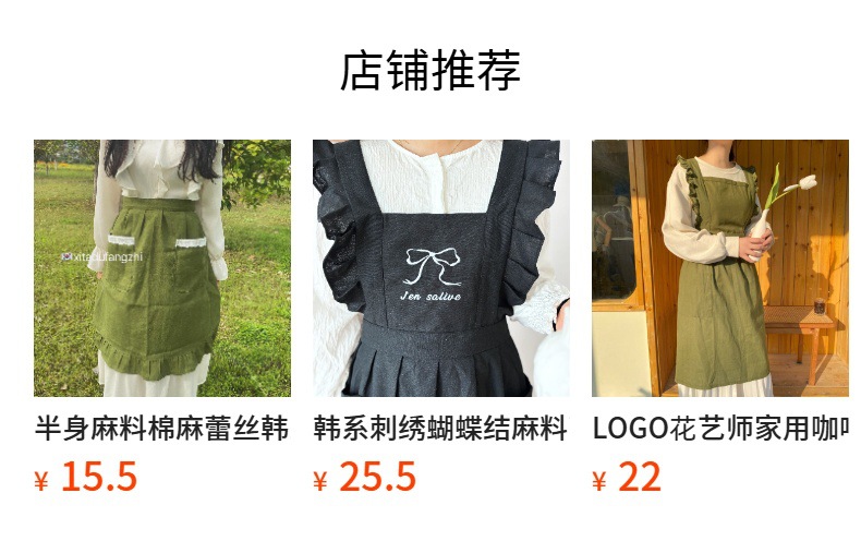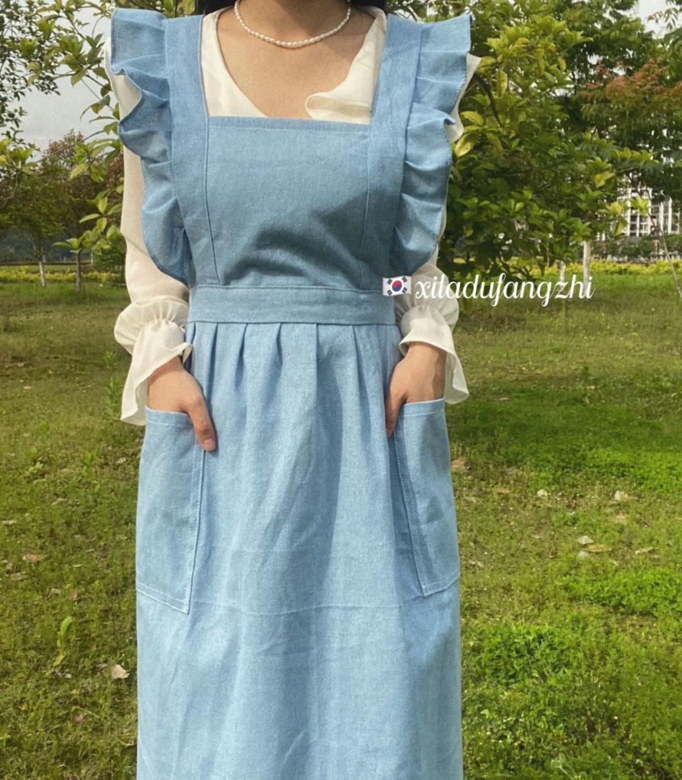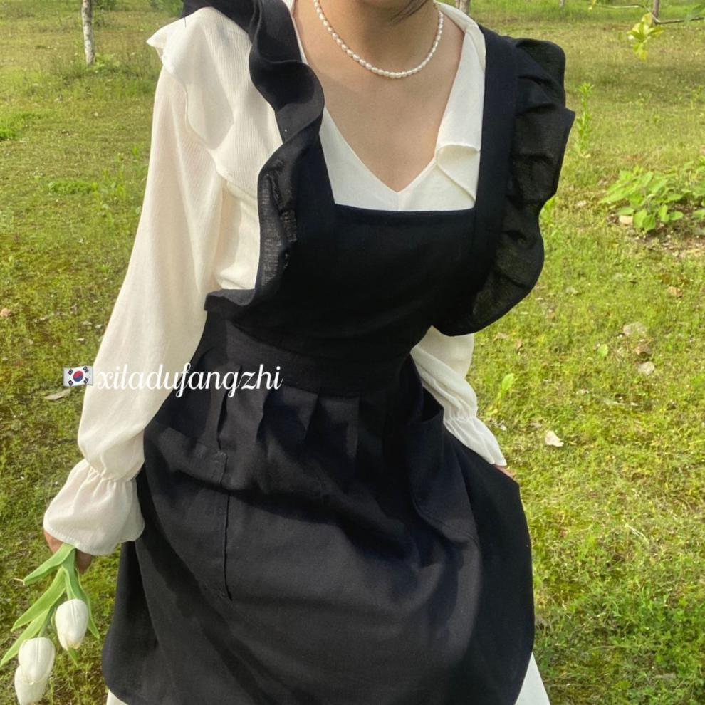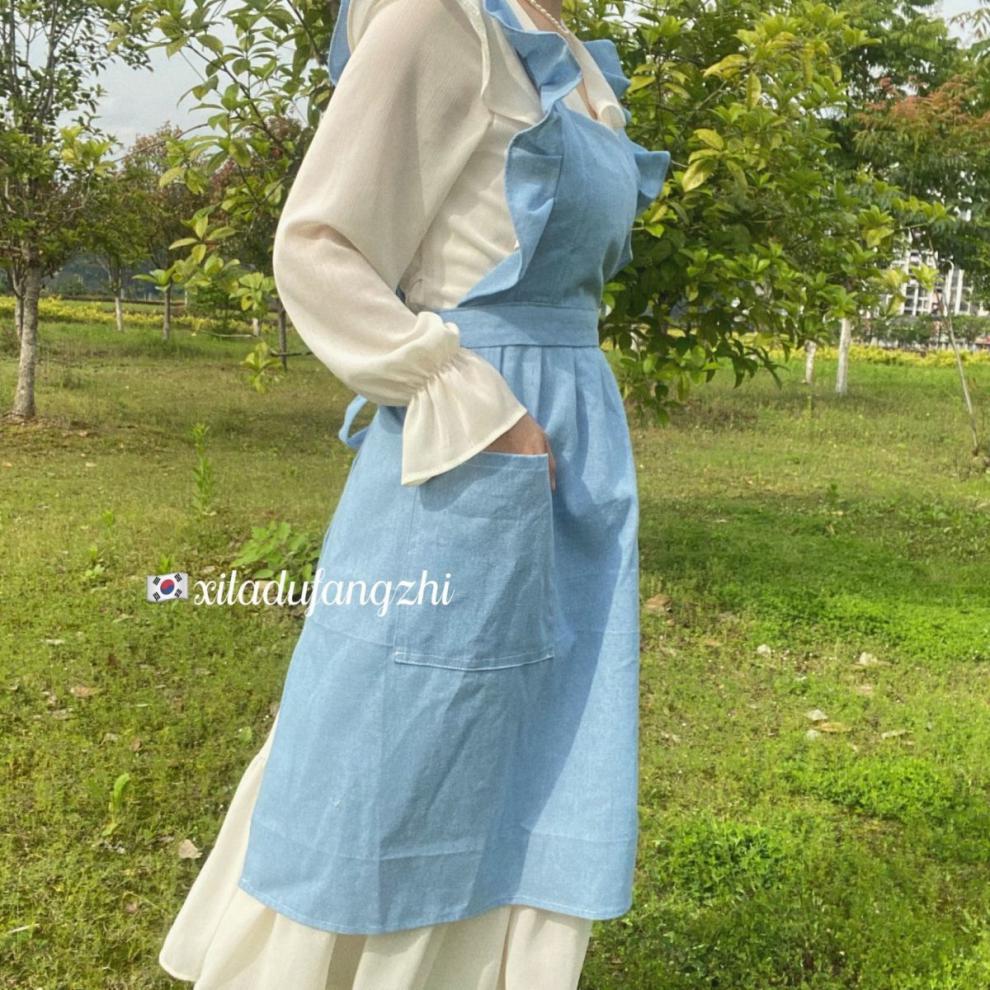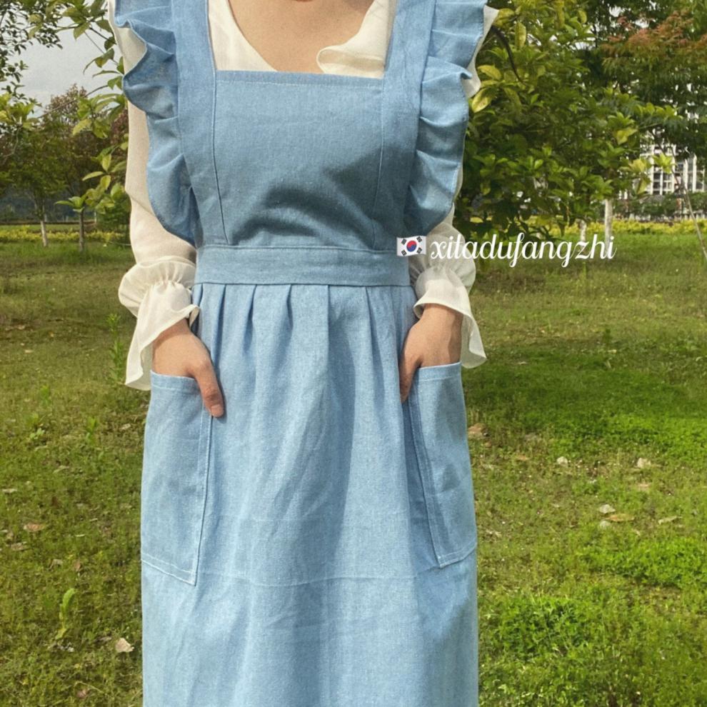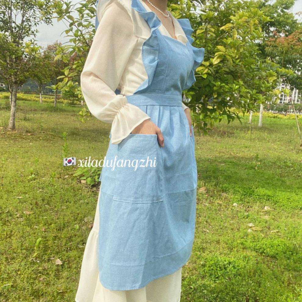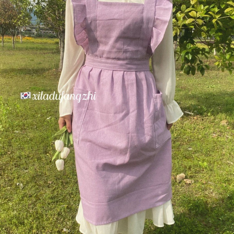 러플 스트랩이 있는 작고 산뜻하고 고급스러운 앞치마, 크로스 한식 인 카페 네일살롱 꽃스토어 가기