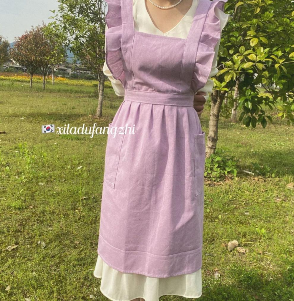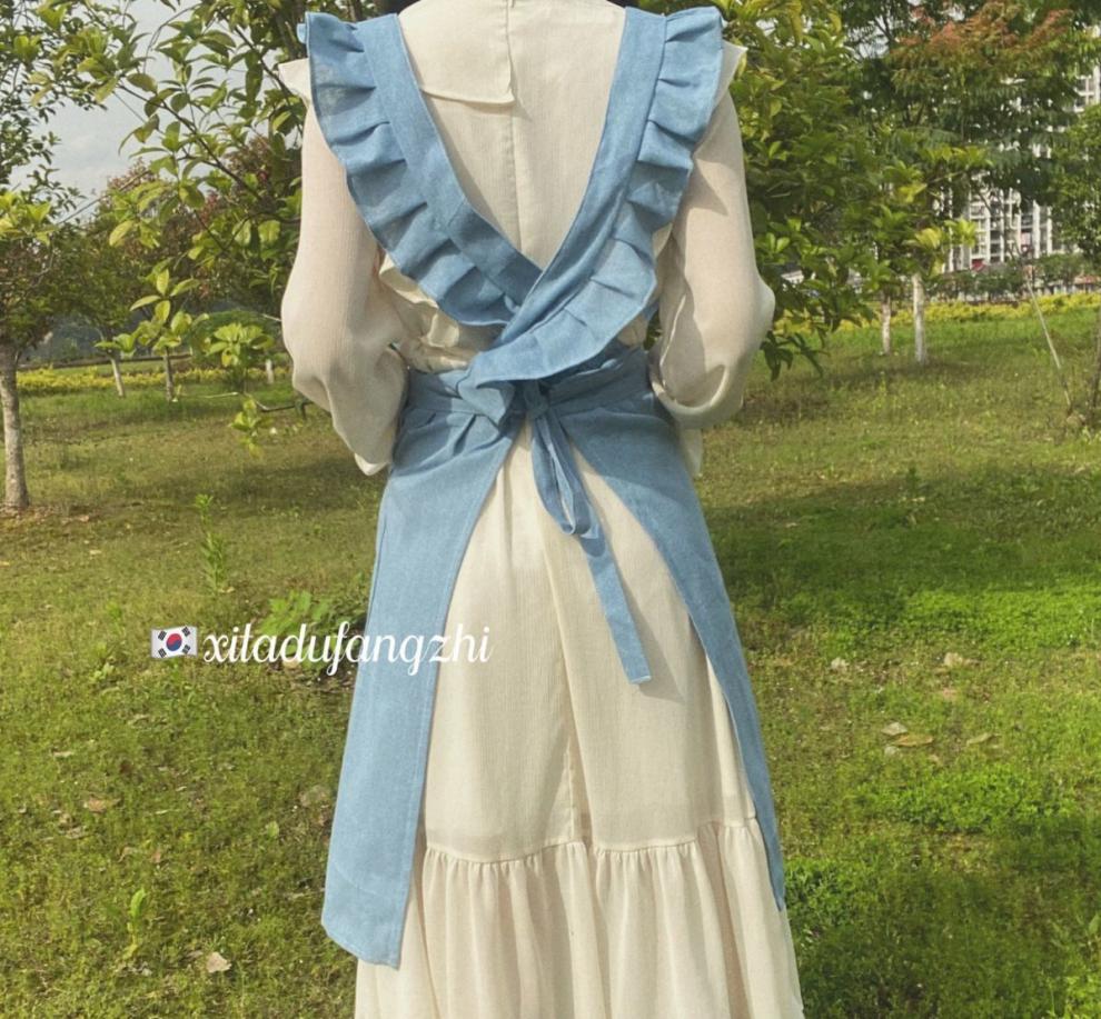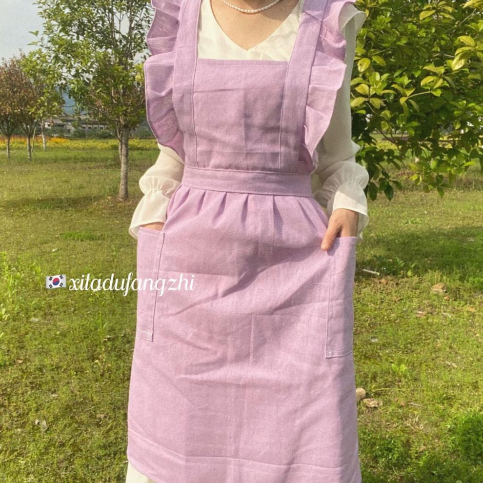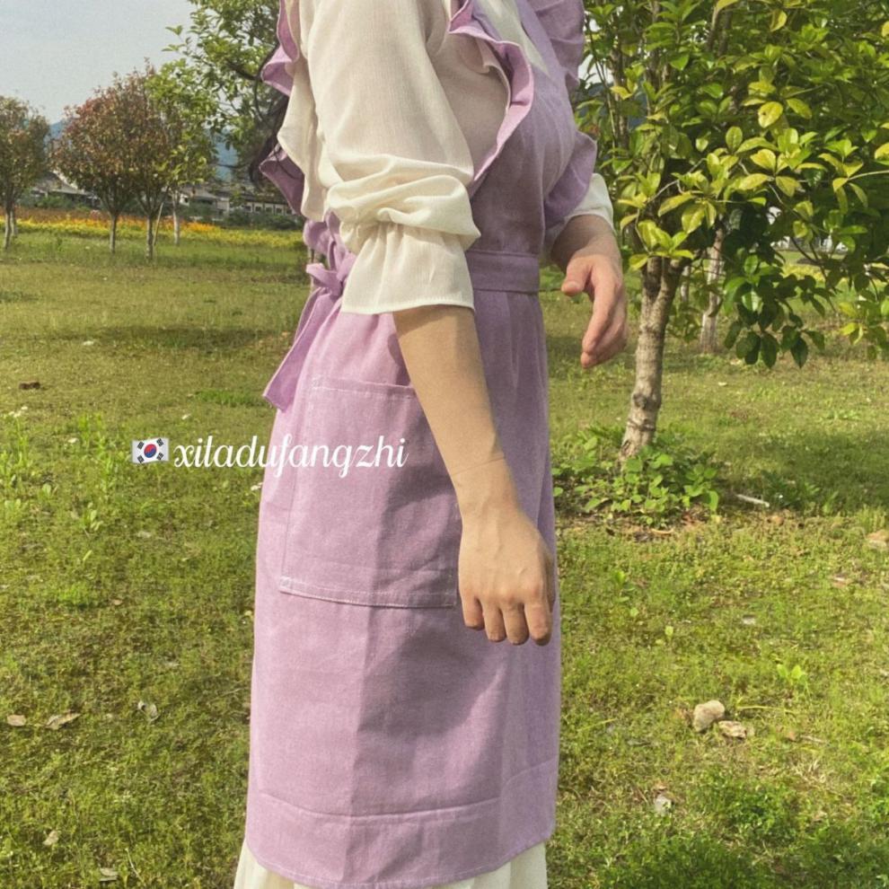 러플 스트랩이 있는 작고 산뜻하고 고급스러운 앞치마, 크로스 한식 인 카페 네일살롱 꽃