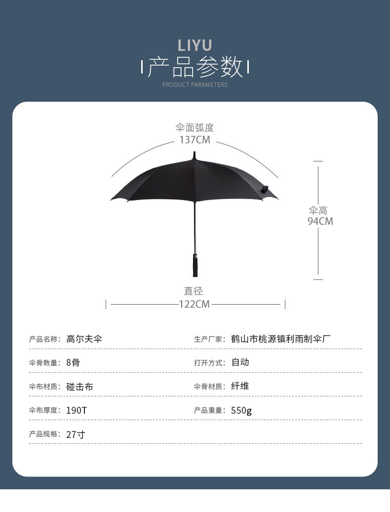 태양우산 27inch 골프우산 8뼈 섬유 직선 손잡이 우산 비즈니스 광고 우산 로고 인쇄 긴 손잡이 자동 우산