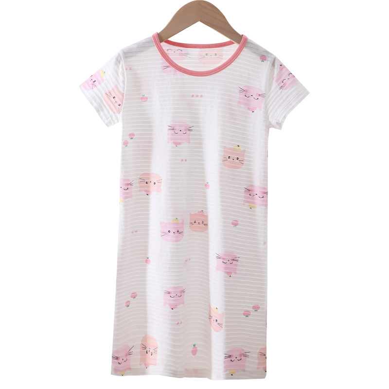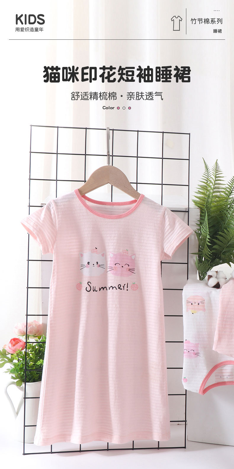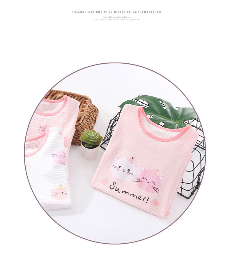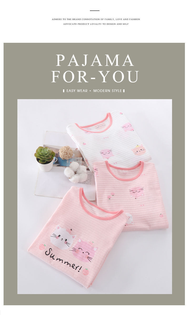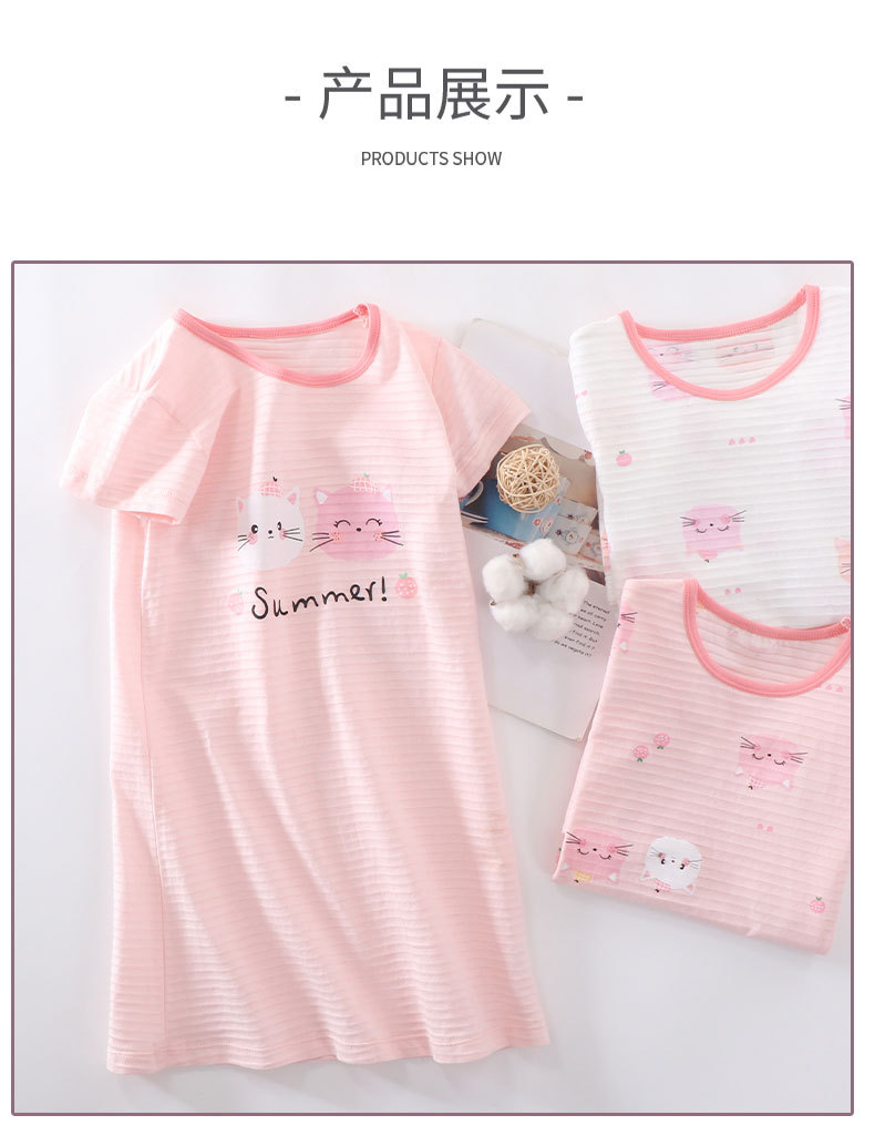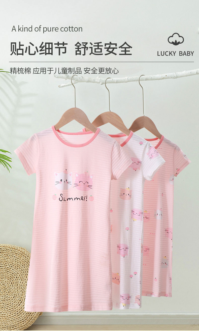 여아 잠옷 슬러브 면 반소매 여름 얇은 통기성 아기 소녀 잠옷 부모-자식 가정복 에어컨 옷 새로운스토어 가기