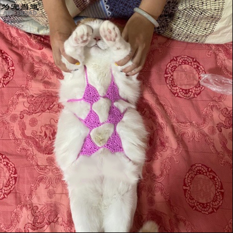 인터넷 Celebrous TikTok 수제 모직 고양이 비키니 애완 동물 재미있는 속옷 고양이 브래지어 사진 사진 소품스토어 가기