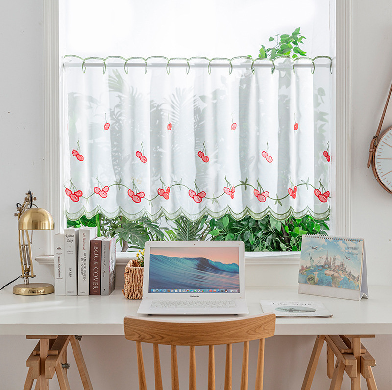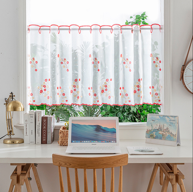 크로스 보더 새로운 자수 인쇄 창 화면 폴리 에스테르 도어 커튼 파티션 커튼 침실 발코니 주방 현대 간단한 짧은