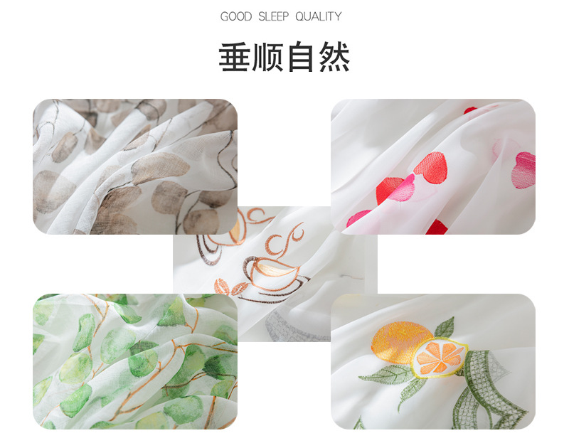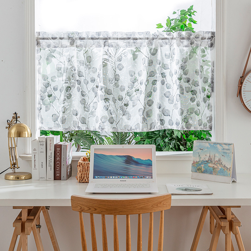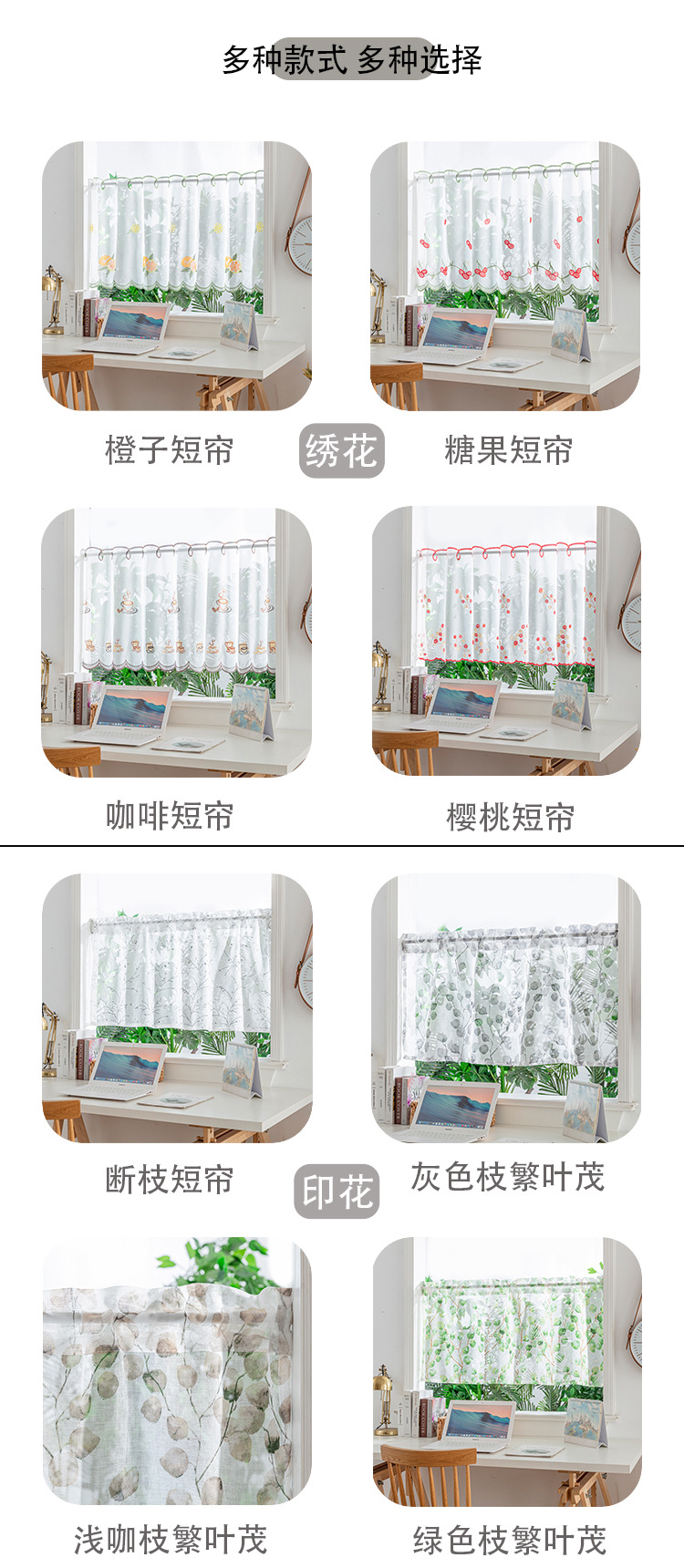 크로스 보더 새로운 자수 인쇄 창 화면 폴리 에스테르 도어 커튼 파티션 커튼 침실 발코니 주방 현대 간단한 짧은스토어 가기