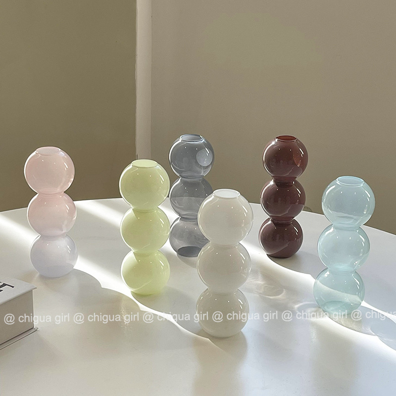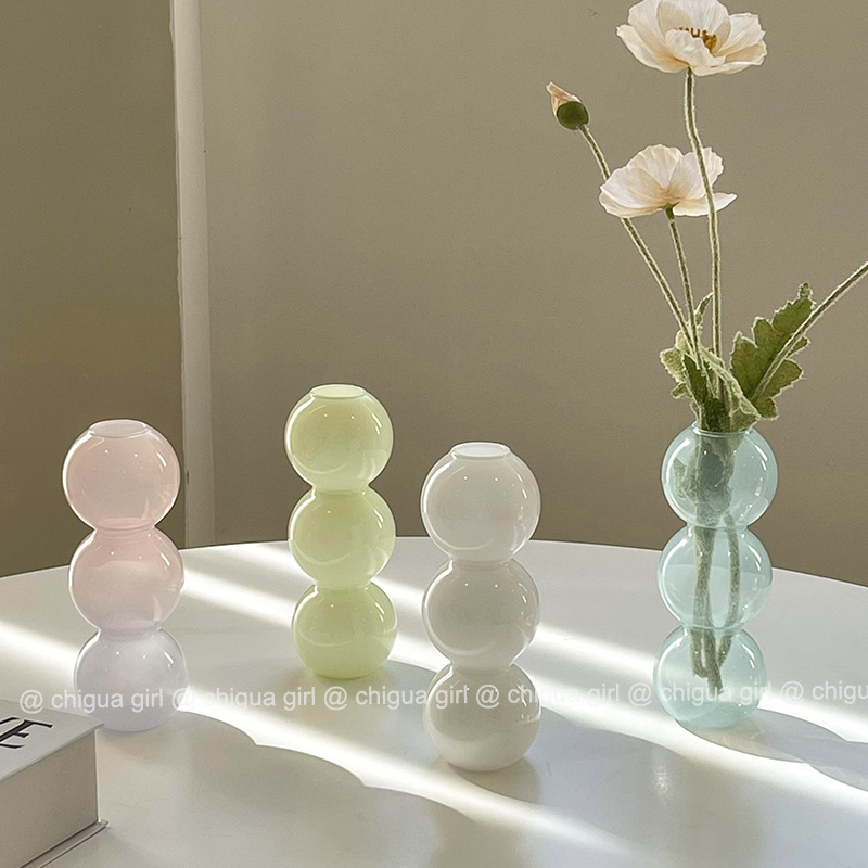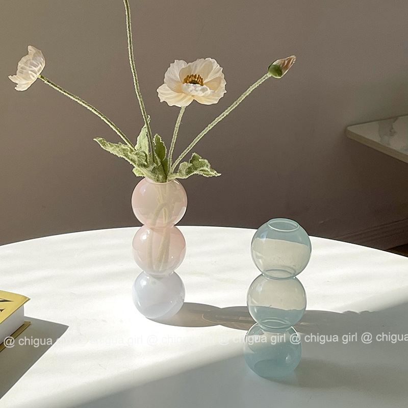 스타일 북유럽 미니 버블 유리 작은 꽃병 말린 꽃 배열 거실 프랑스어 홈 데스크탑 장식 장식품