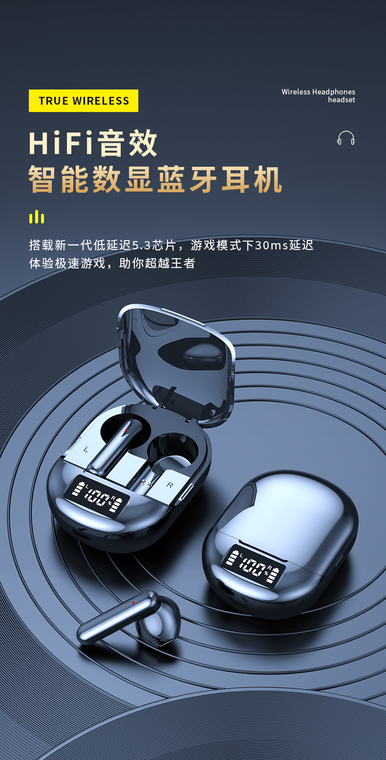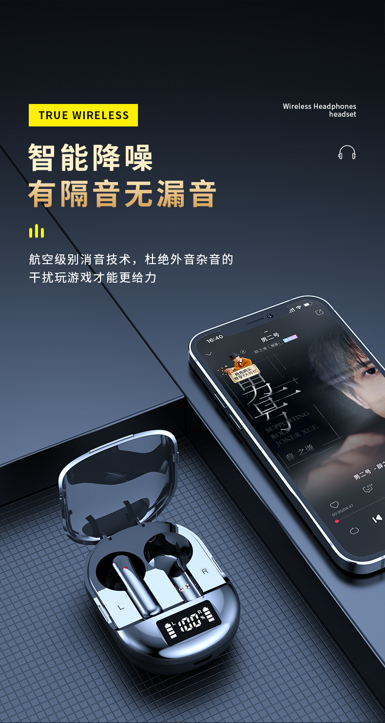 국경 간 개인 모델 새로운 k40 무선 블루투스 헤드셋 TWS 5.3 디지털 디스플레이 낮은 대기 시간 인 이어 블루투스 헤드셋