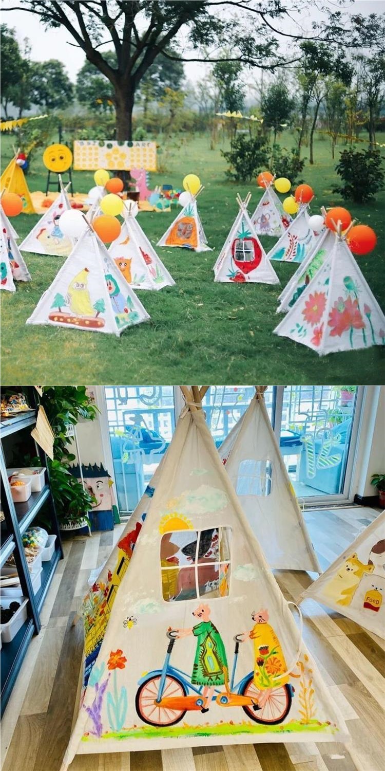 텐트 페인팅 소재 패키지 나들이 손으로 그린 손으로 그린 그림 야외 활동 삼각형 작은 텐트 빈 텐트