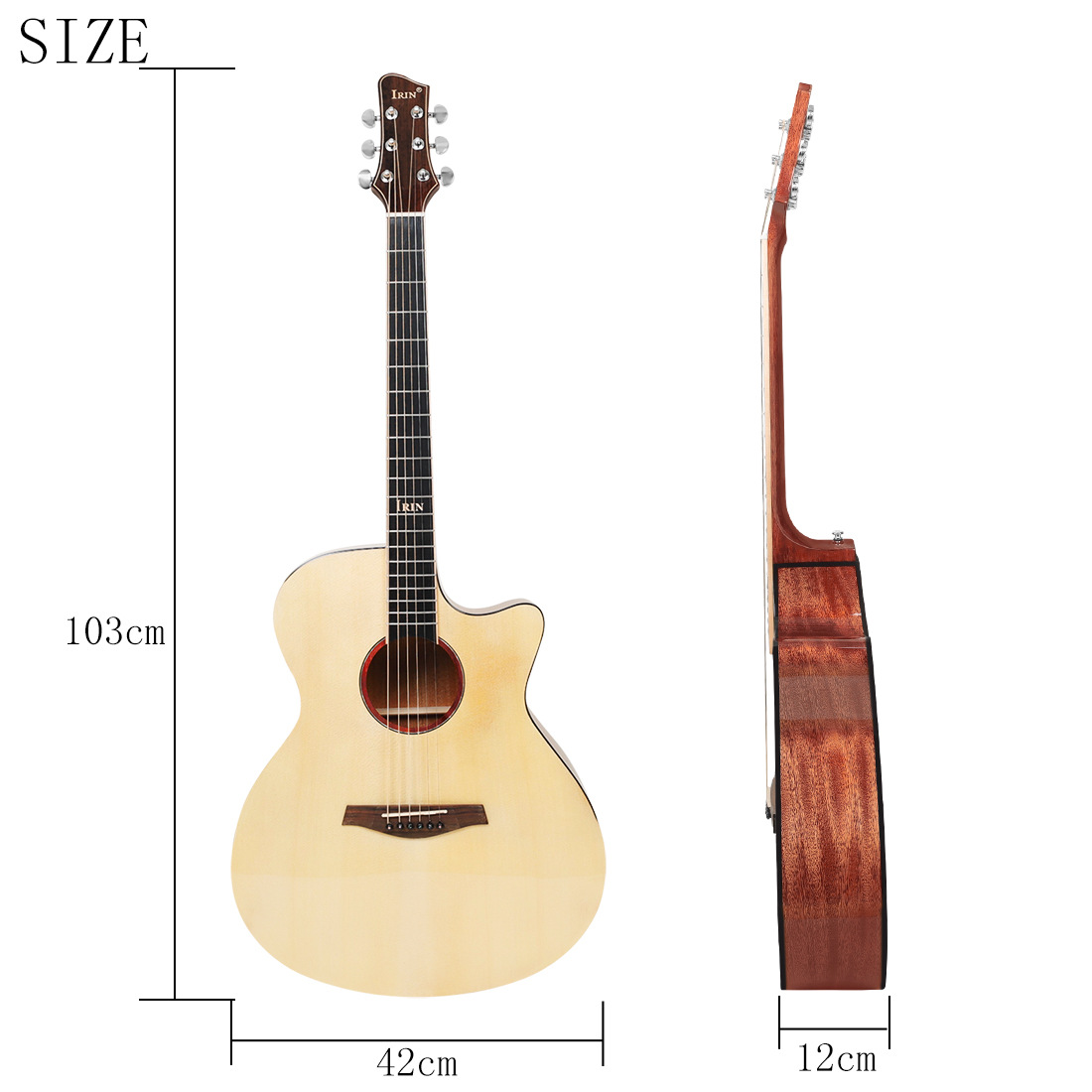 产品名称:高端40英寸缺角云杉面板非洲桃花芯背侧板D型桶民谣吉他