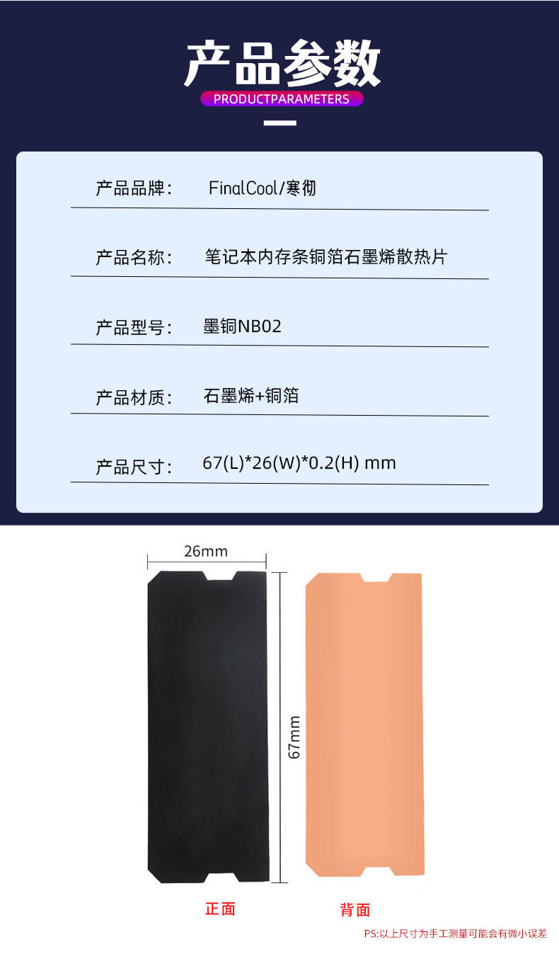 한치 노트북 컴퓨터 메모리 칩 방열판 순수 구리 냉각 페이스트 DDR4/5 얇은 그래 핀 방열판