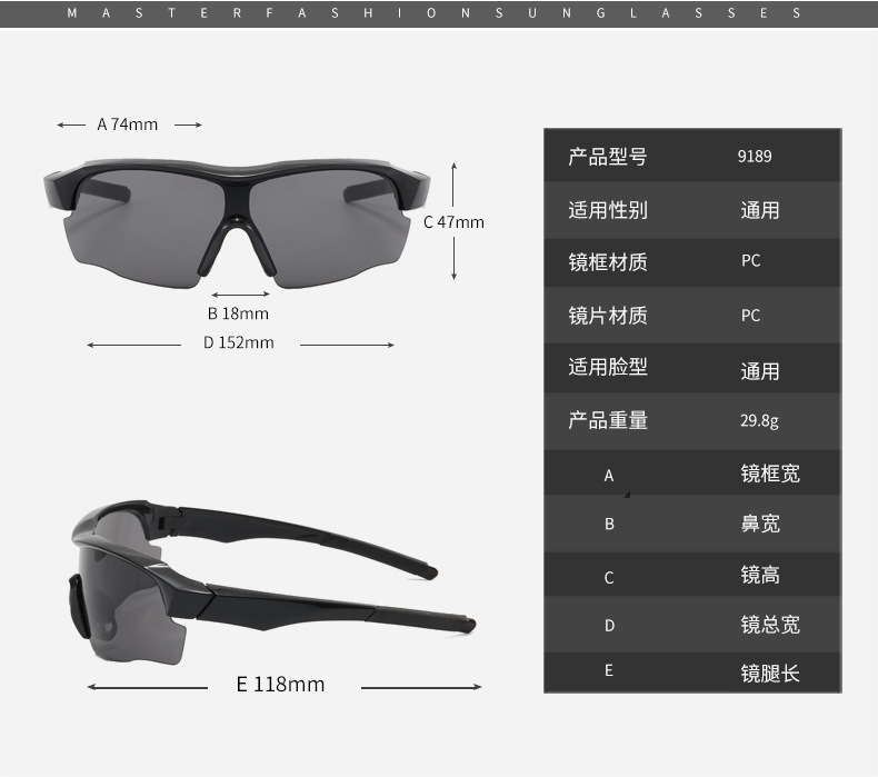 新款时尚运动眼镜 跨境自行车偏光墨镜 男女户外骑行太阳镜带海绵