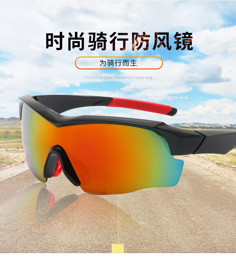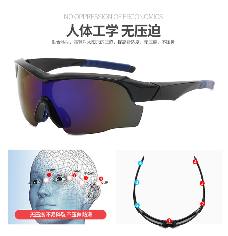 跨境新款炫彩骑行墨镜连体大框户外眼镜男女士防紫外线运动太阳镜