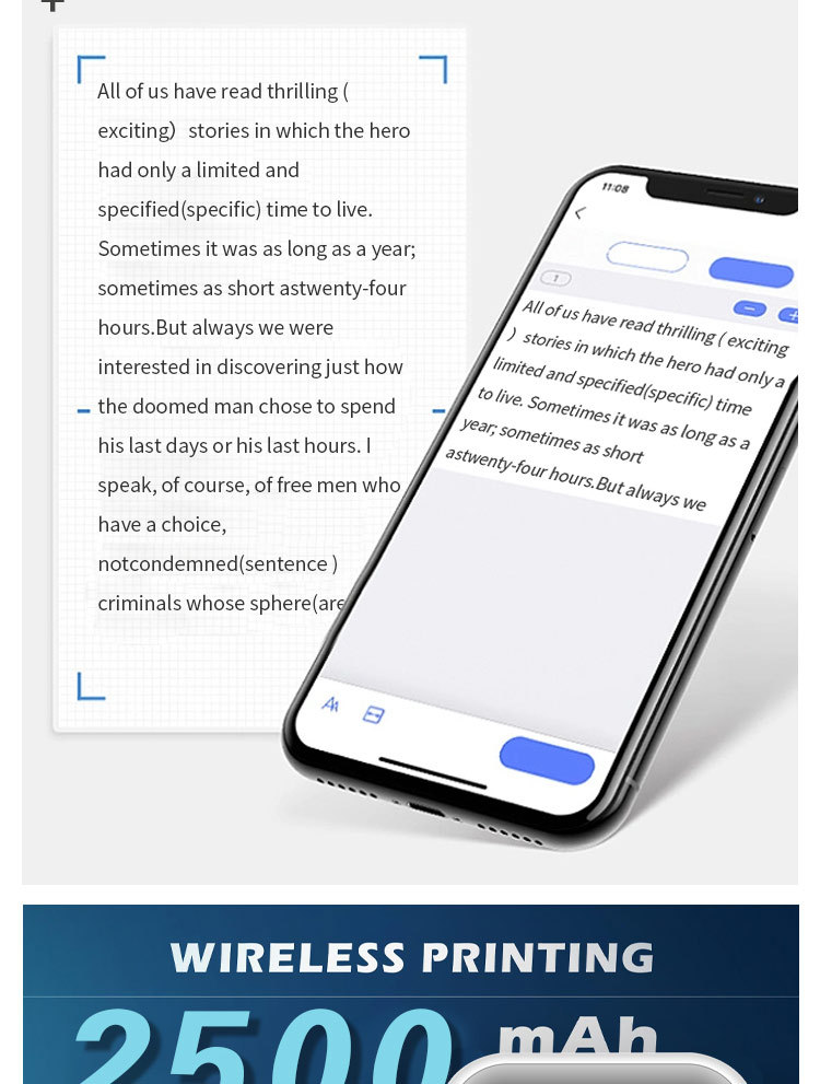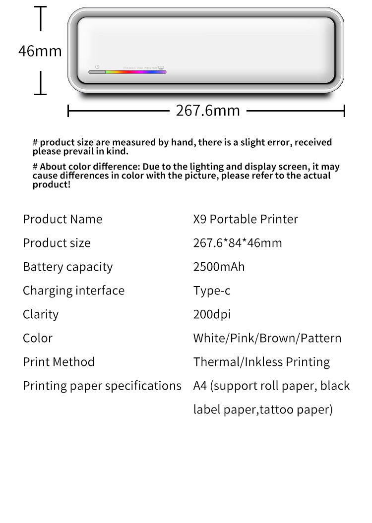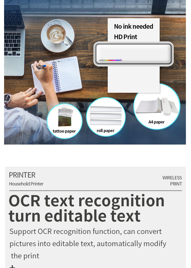 국경 간 A4 감열 프린터 소형 미니 휴대용 블루투스 라벨 사진 무잉크 시험지 프린터