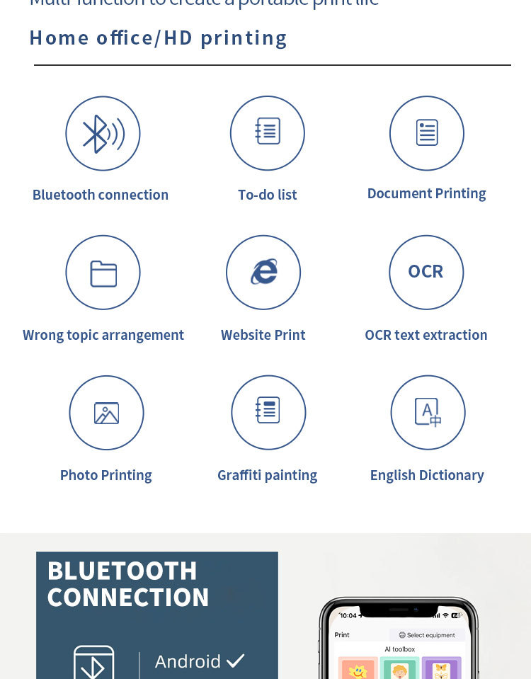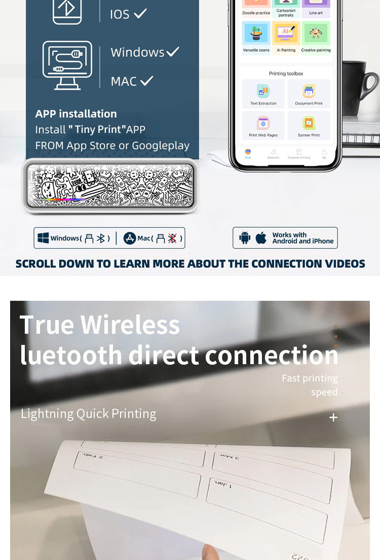 국경 간 A4 감열 프린터 소형 미니 휴대용 블루투스 라벨 사진 무잉크 시험지 프린터스토어 가기