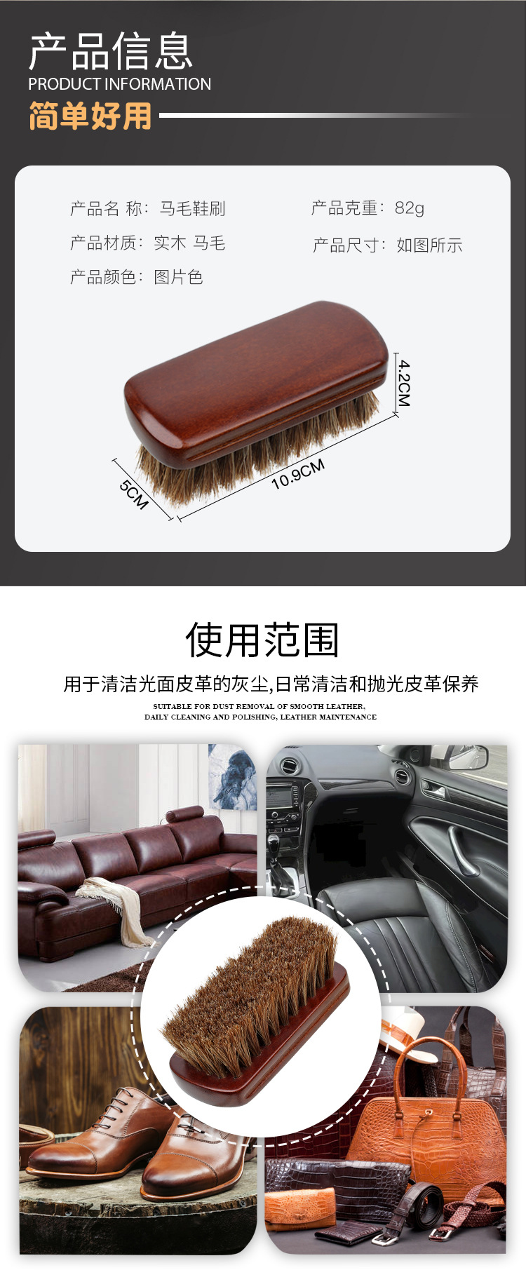 히스토트리 말털 브러쉬 오일 광택 먼지 제거 부드러운 모피 신발 브러쉬 가정용 원목 청소 브러쉬 신발 브러쉬