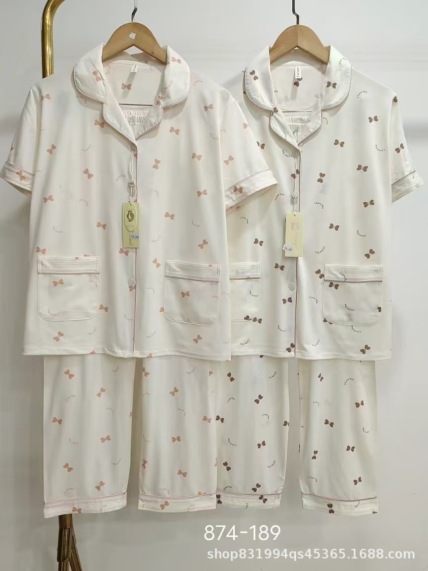 징당 후궁 여름 잠옷 여성 카디건 반팔 바지 한국 캐주얼 학생 홈웨어 세트 모방 면화스토어 가기