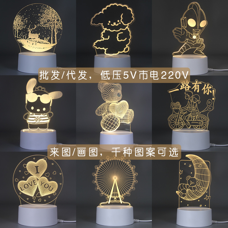 3D 야간 조명 창조적 인 선물 책상 램프 USB 충전식 터치 침대 옆 램프 만들기 패턴 인쇄 가능한 로고스토어 가기