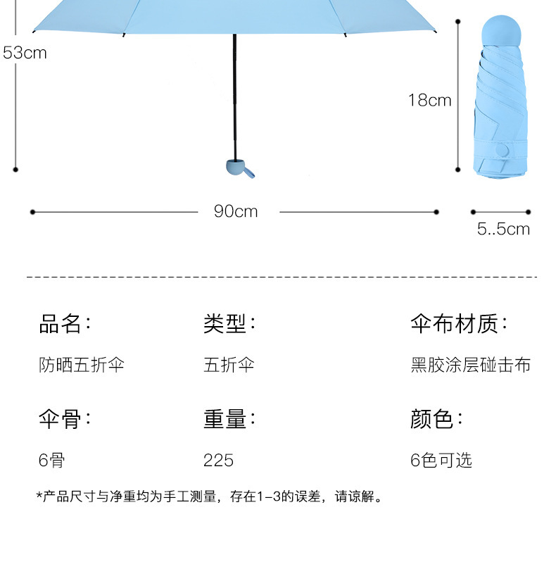5 배 비닐 양산 주머니 우산 자외선 차단 광고 우산 콤팩트 초경량 캡슐 우산 도매 제조 업체스토어 가기
