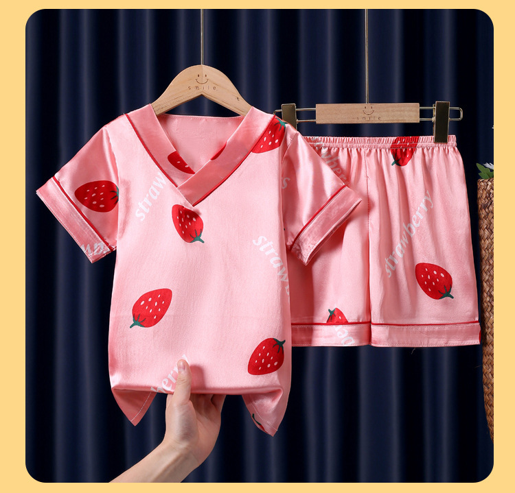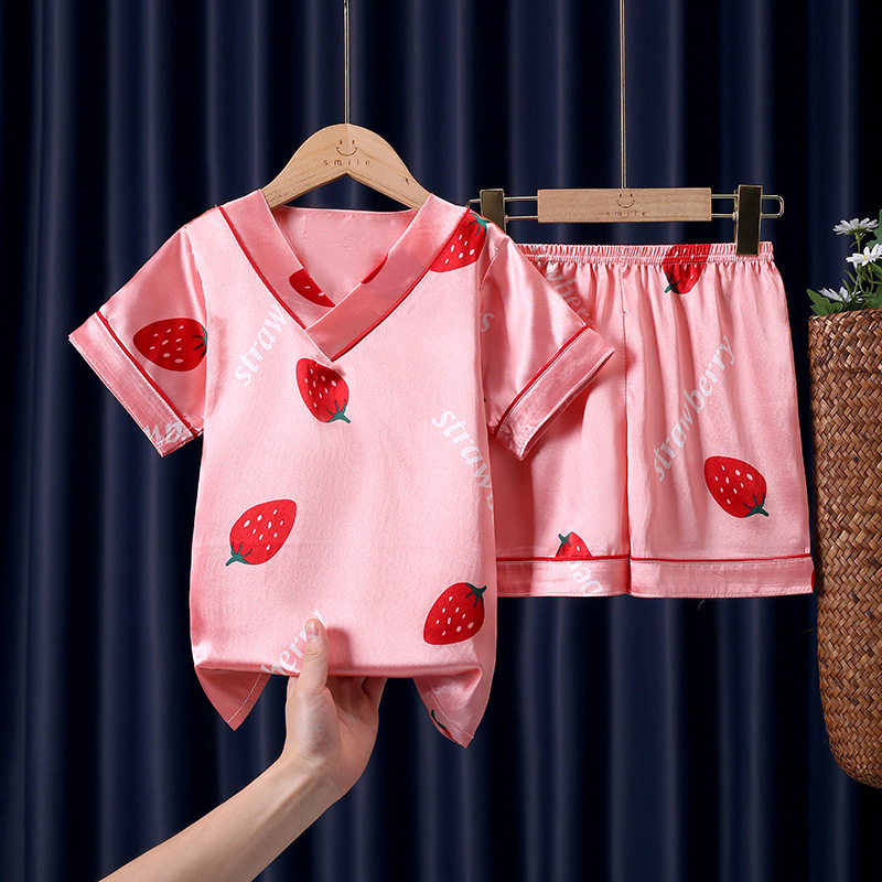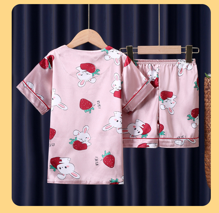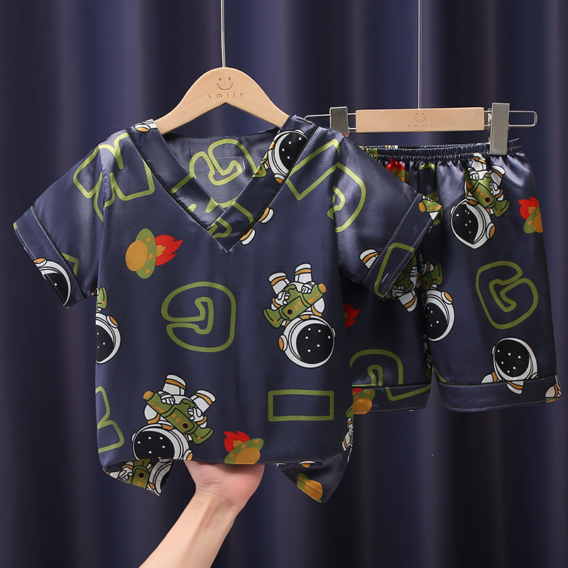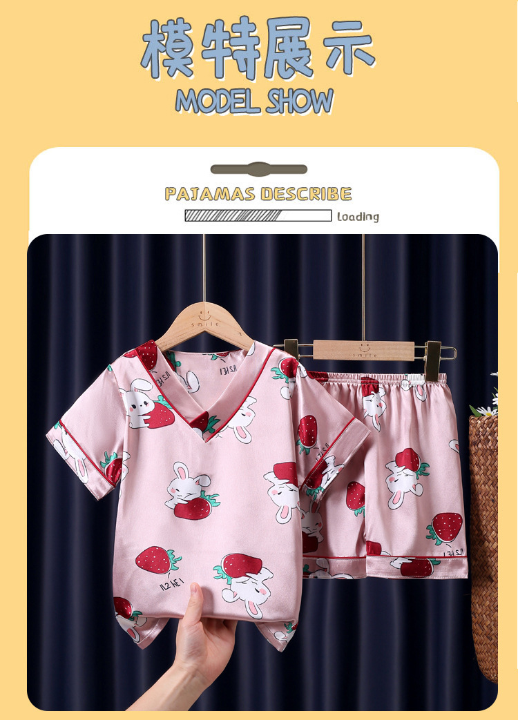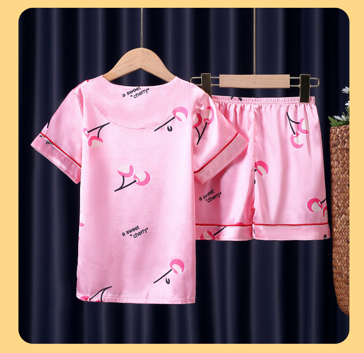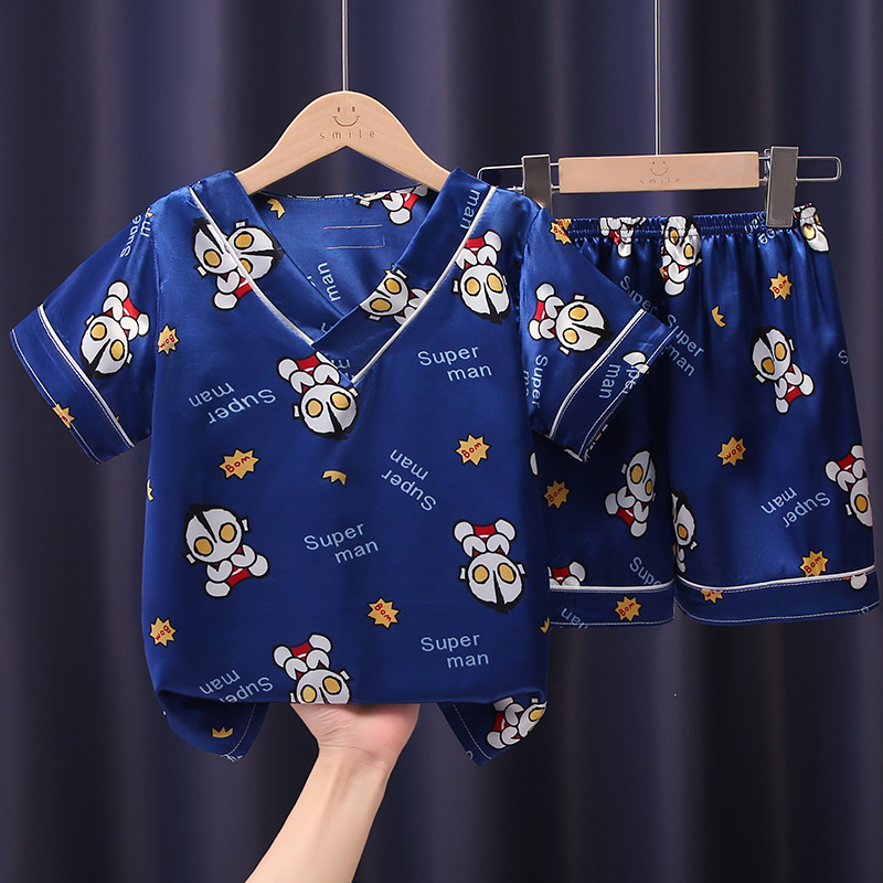 어린이 잠옷 여름 얼음 실크 반팔 얇은 어린이 소년 소녀 에어컨 의류 여름 가정 옷 세트 도매스토어 가기