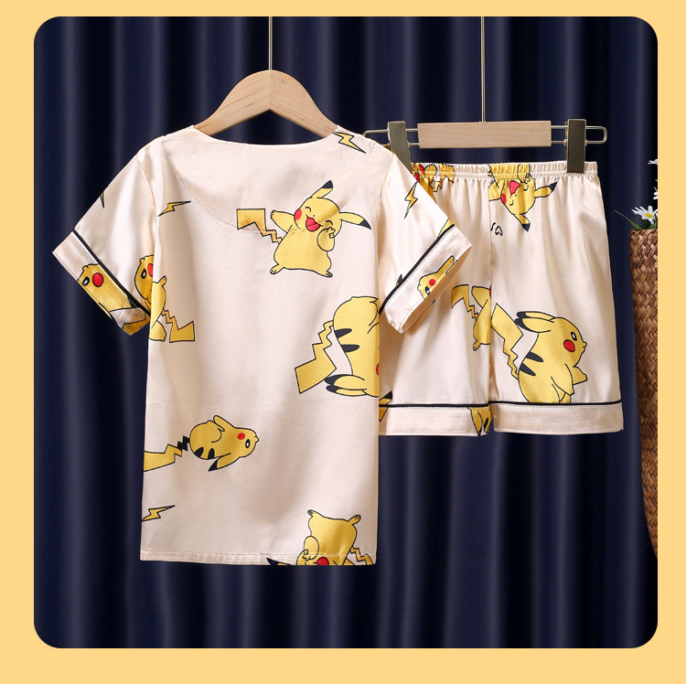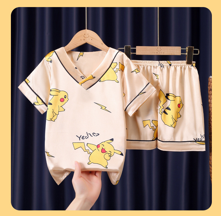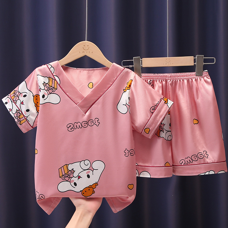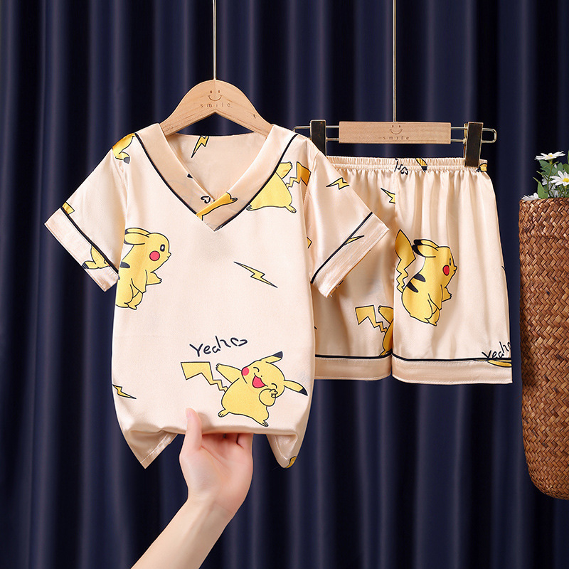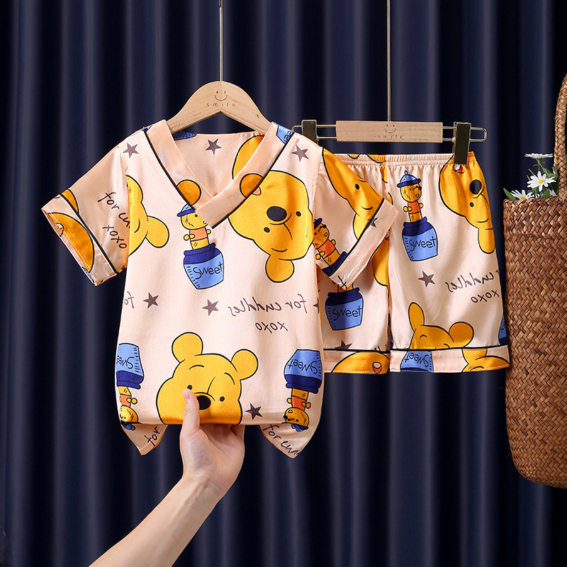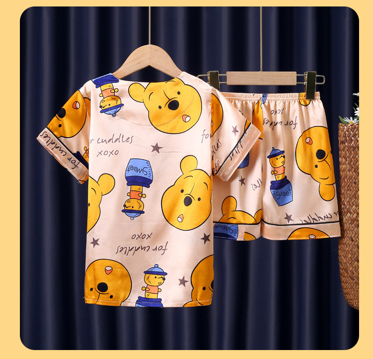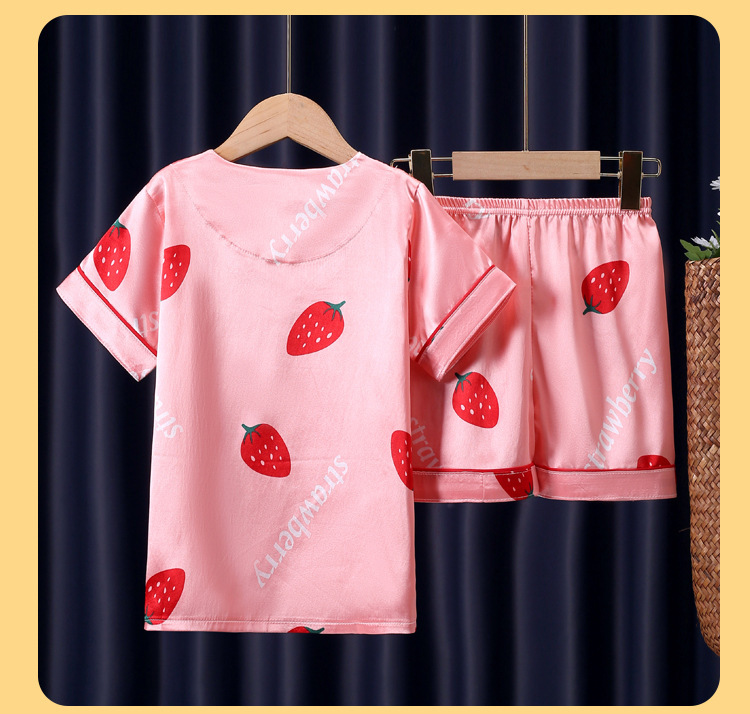 어린이 잠옷 여름 얼음 실크 반팔 얇은 어린이 소년 소녀 에어컨 의류 여름 가정 옷 세트 도매스토어 가기