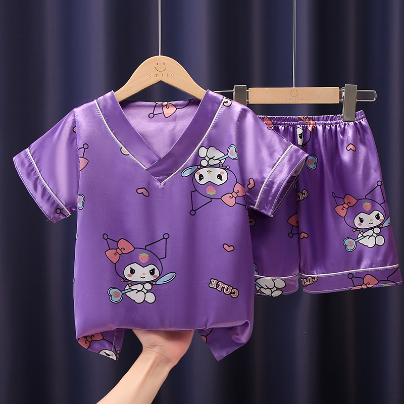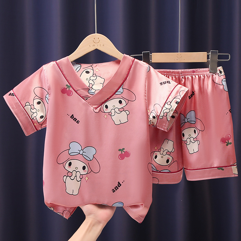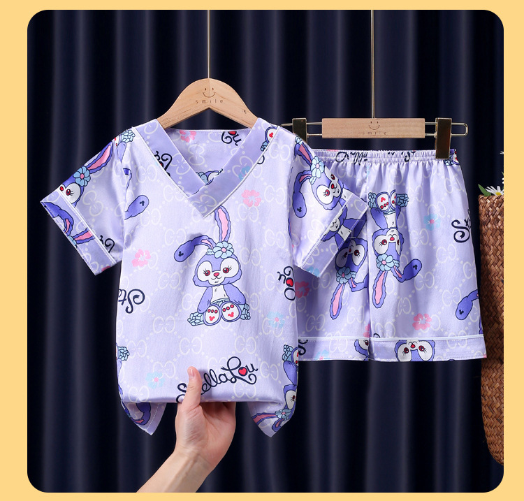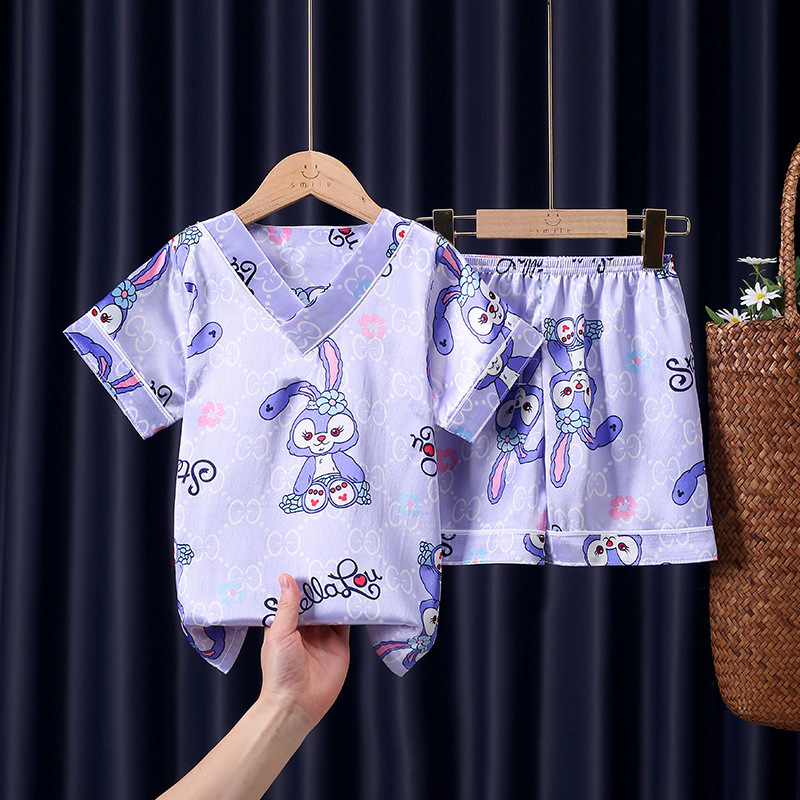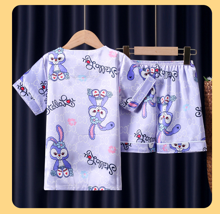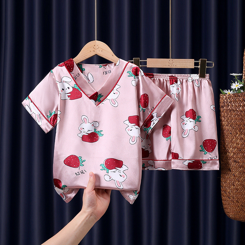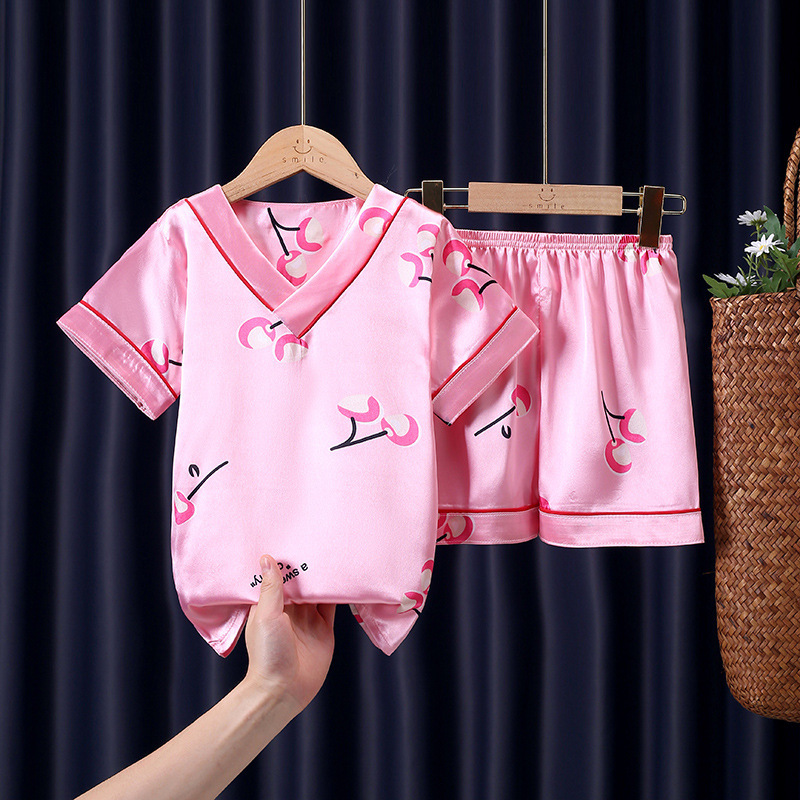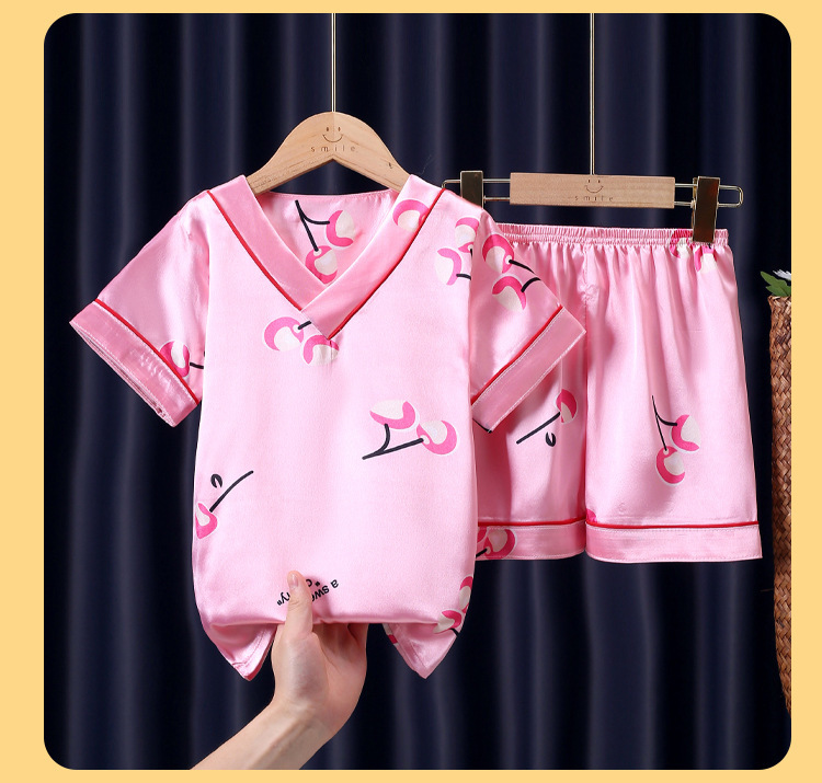 어린이 잠옷 여름 얼음 실크 반팔 얇은 어린이 소년 소녀 에어컨 의류 여름 가정 옷 세트 도매