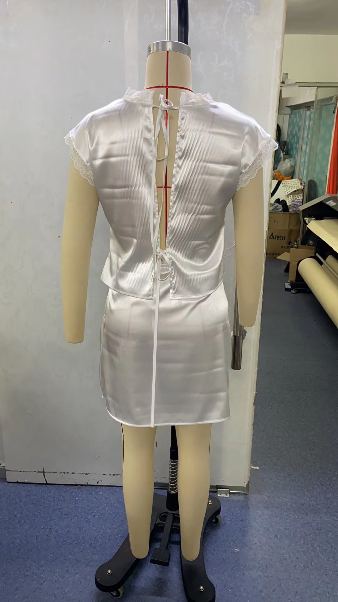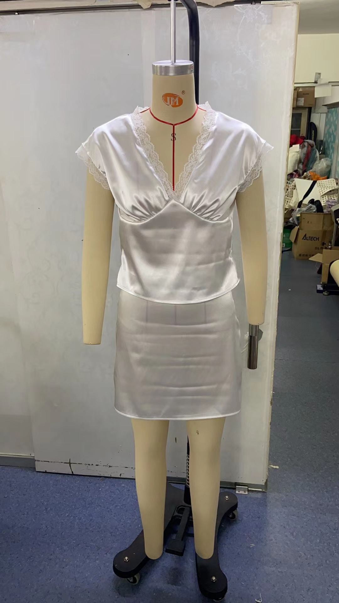 2023 년 여름 새로운 유럽과 미국 여성의 단색 V 넥 민소매 조끼 섹시한 백리스 탑 스커트 투피스 세트