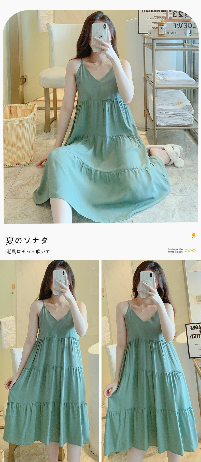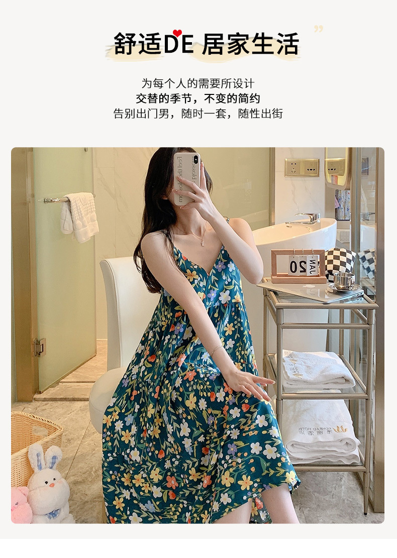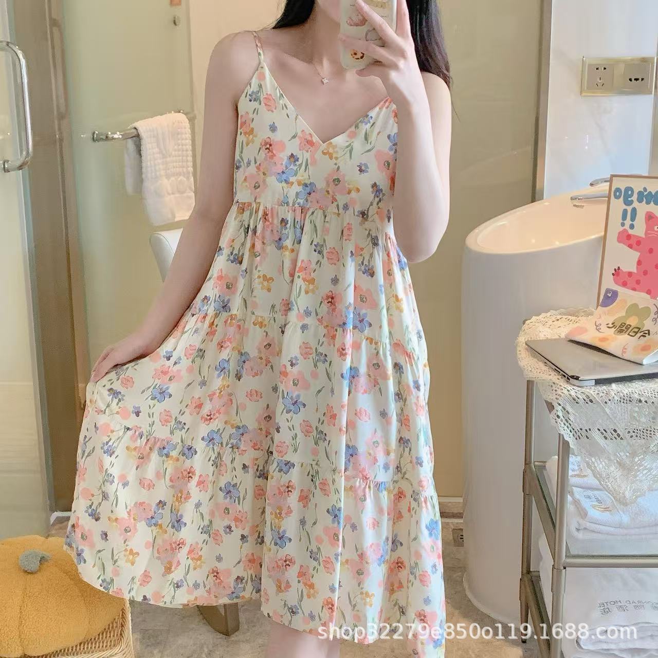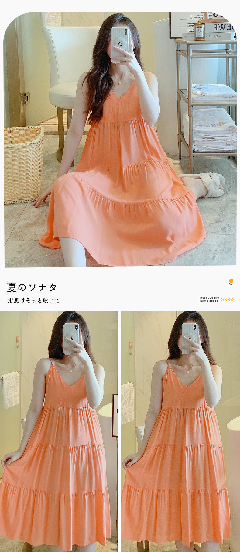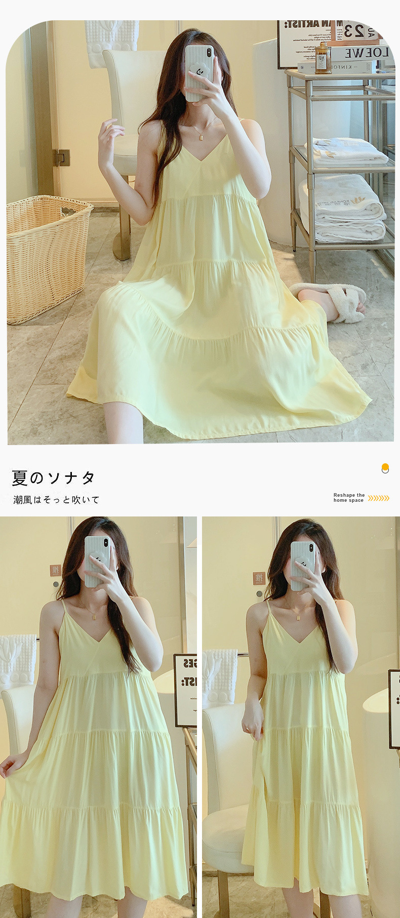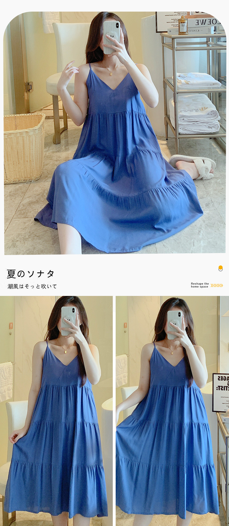 슬링 면 실크 잠옷 여자의 봄과 여름 새로운 잠옷 가정 옷 일본 스타일 달콤한 소녀 학생 단색 면 실크 원피스스토어 가기