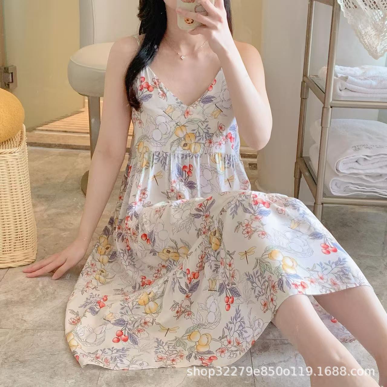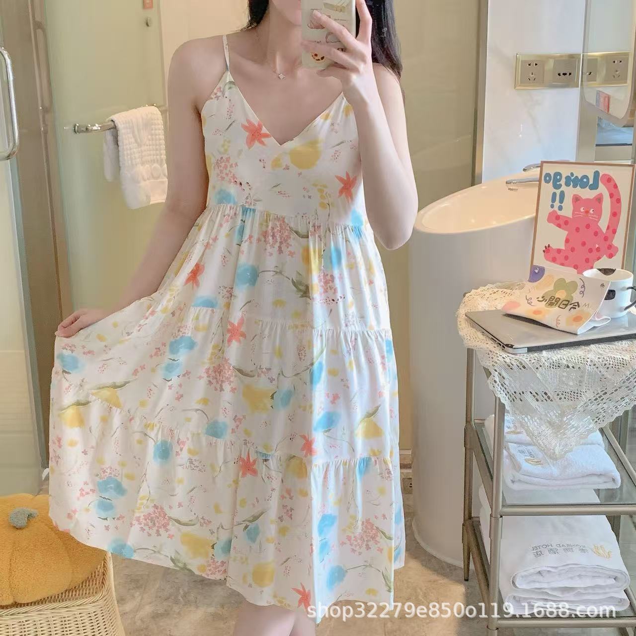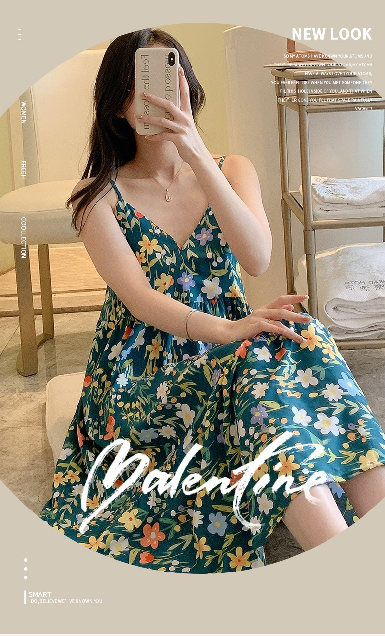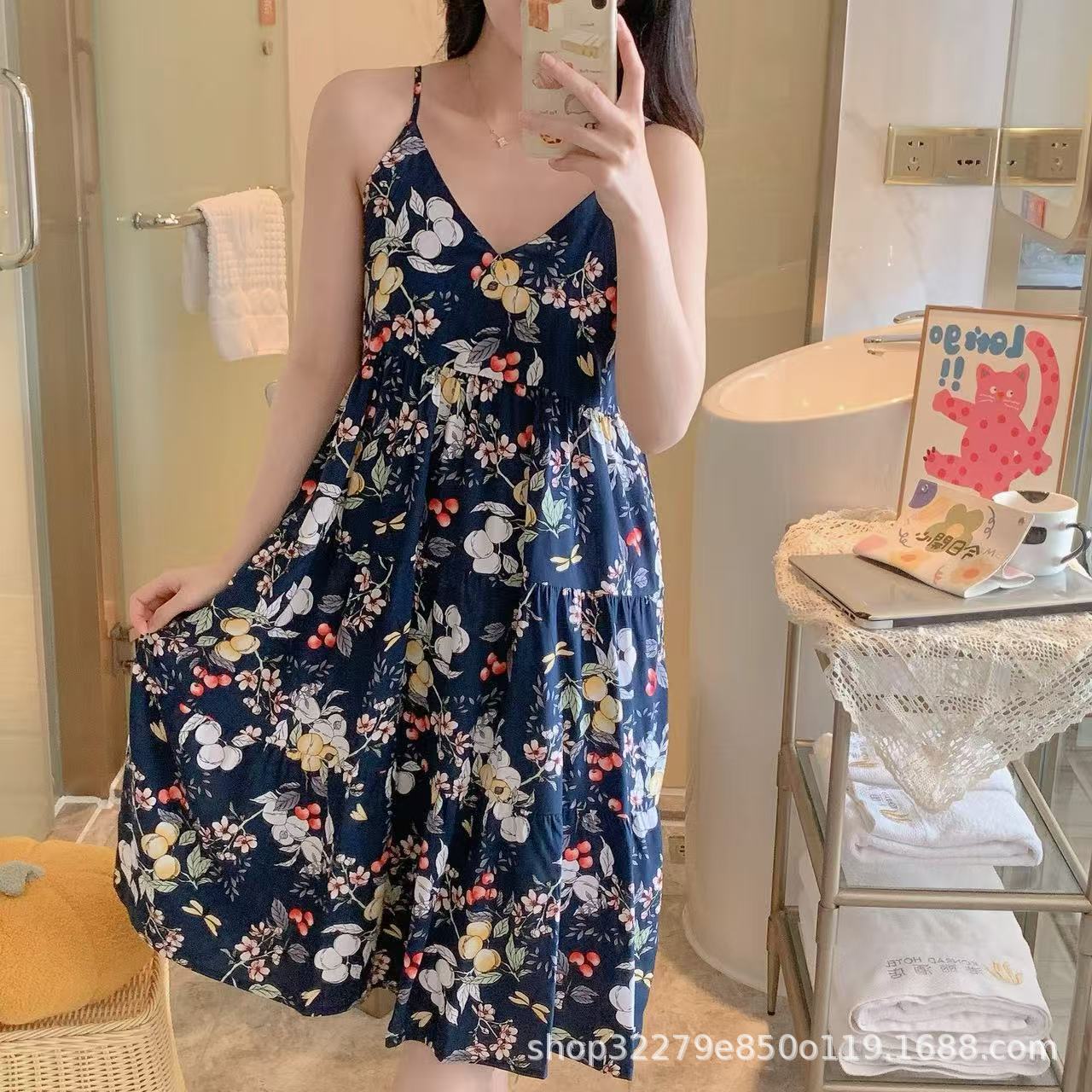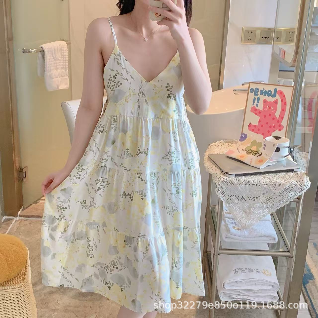 슬링 면 실크 잠옷 여자의 봄과 여름 새로운 잠옷 가정 옷 일본 스타일 달콤한 소녀 학생 단색 면 실크 원피스스토어 가기