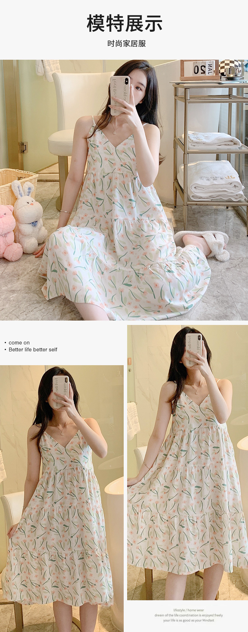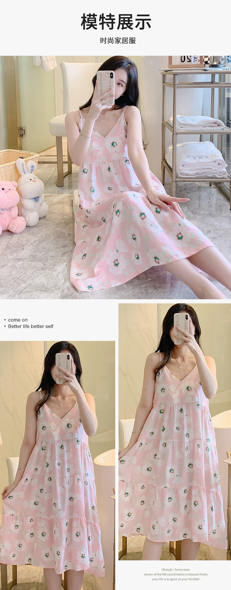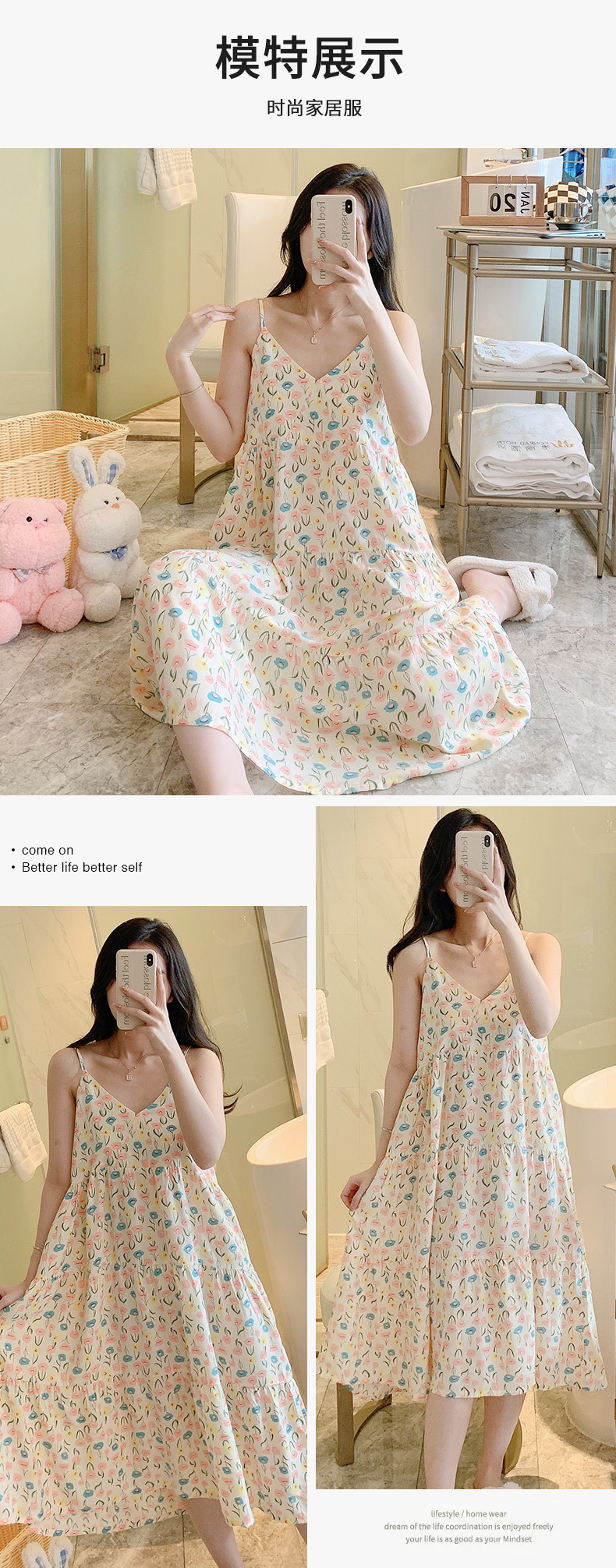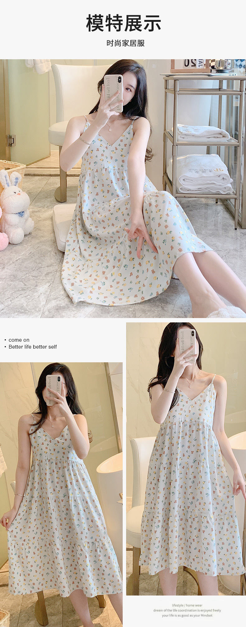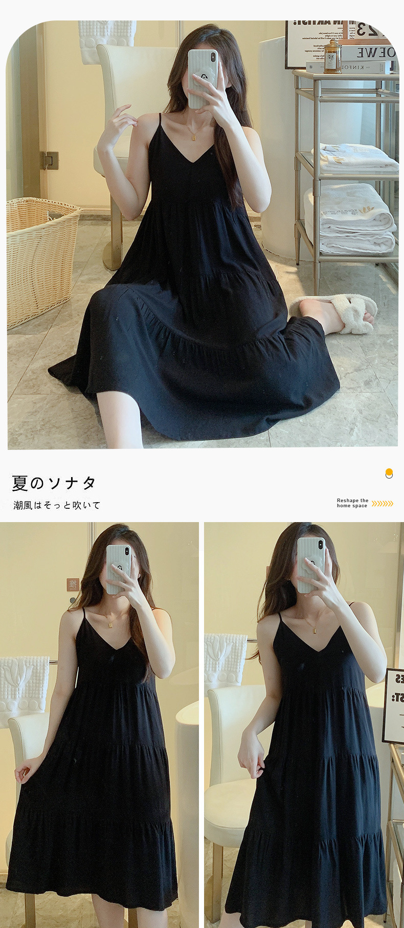 슬링 면 실크 잠옷 여자의 봄과 여름 새로운 잠옷 가정 옷 일본 스타일 달콤한 소녀 학생 단색 면 실크 원피스스토어 가기