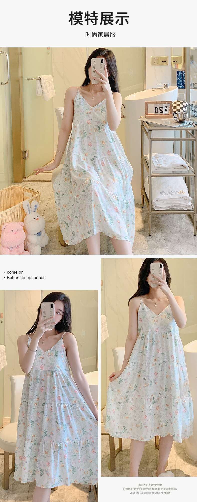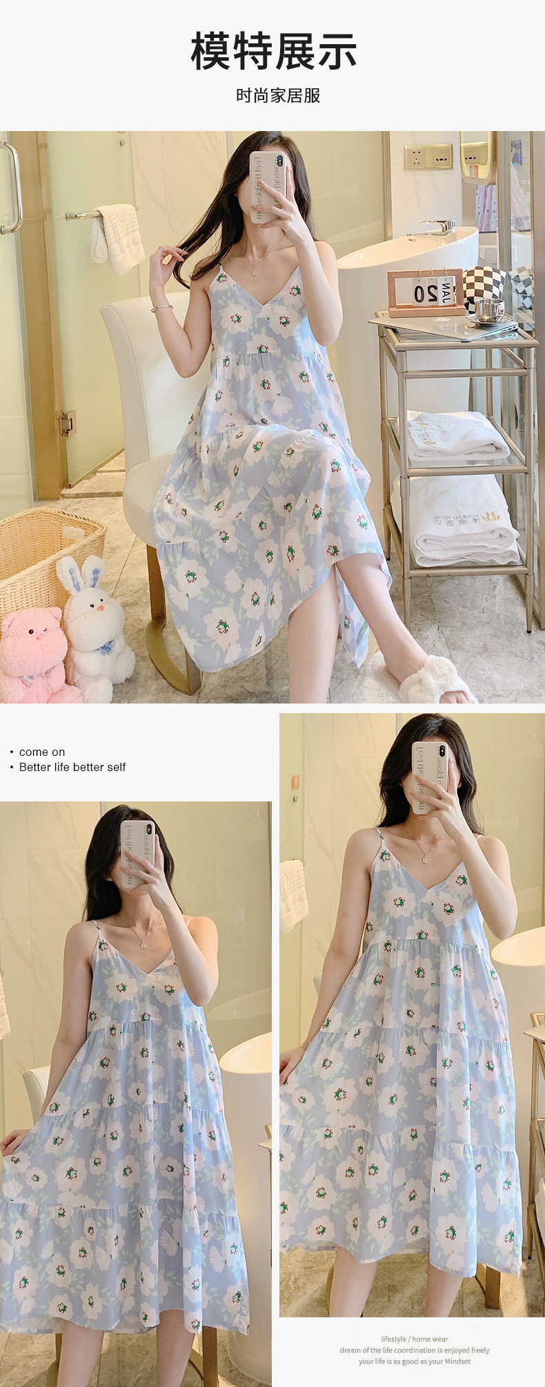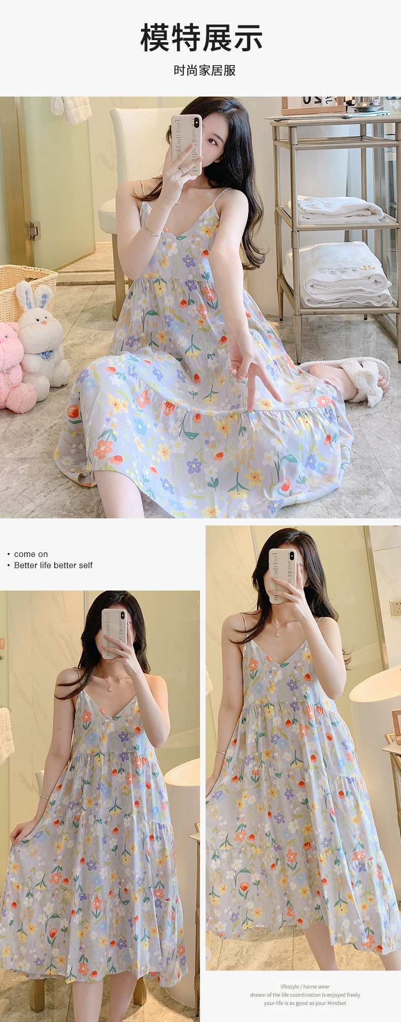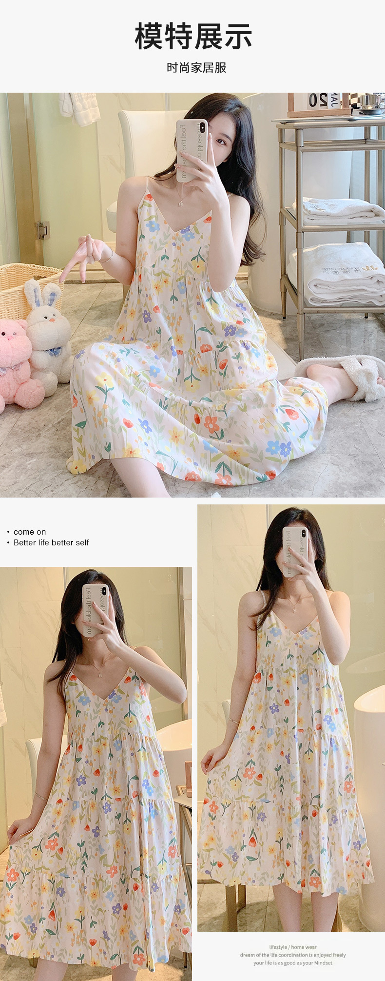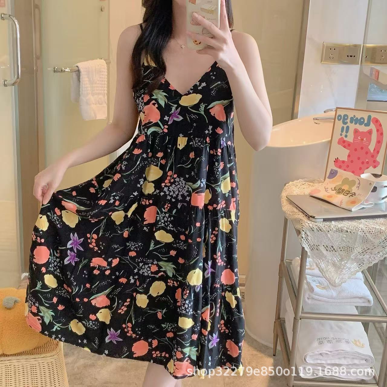 슬링 면 실크 잠옷 여자의 봄과 여름 새로운 잠옷 가정 옷 일본 스타일 달콤한 소녀 학생 단색 면 실크 원피스스토어 가기