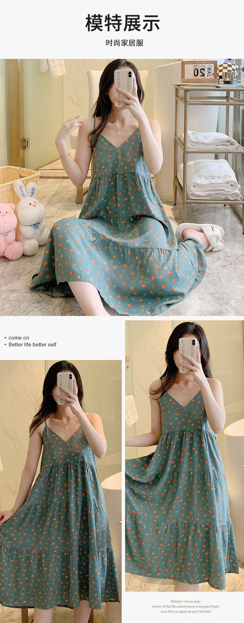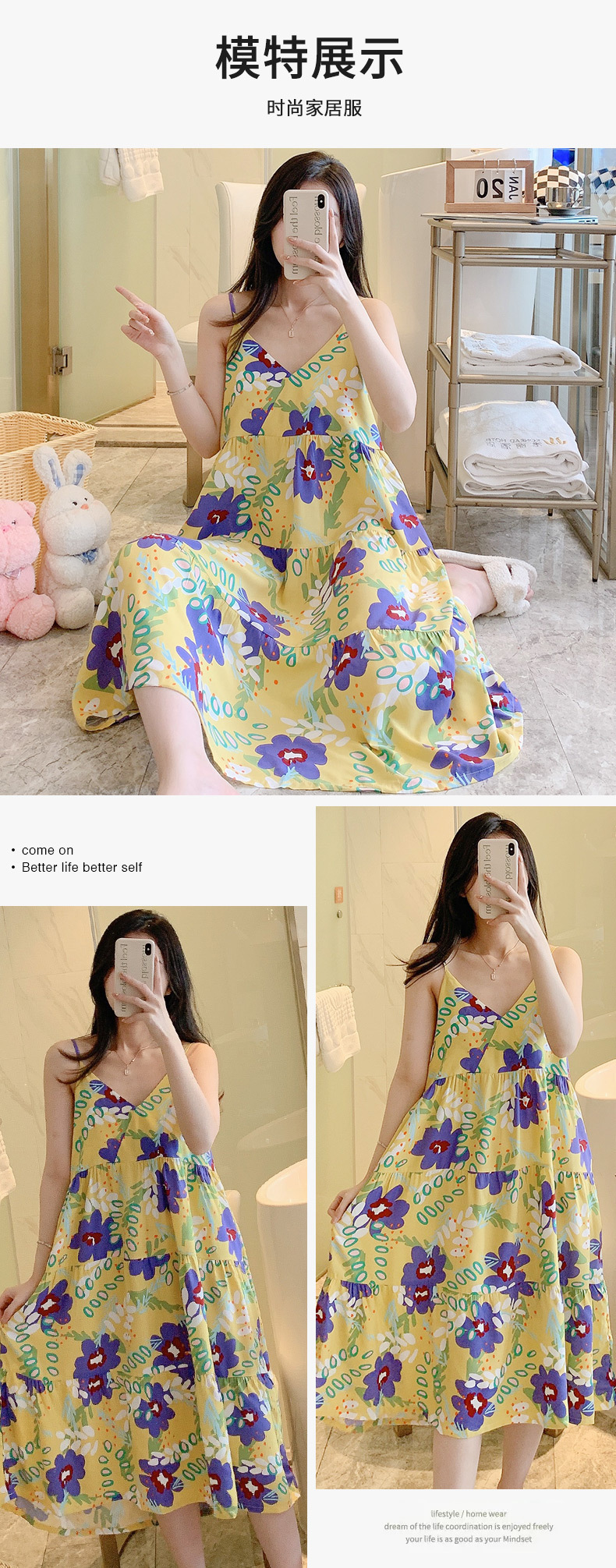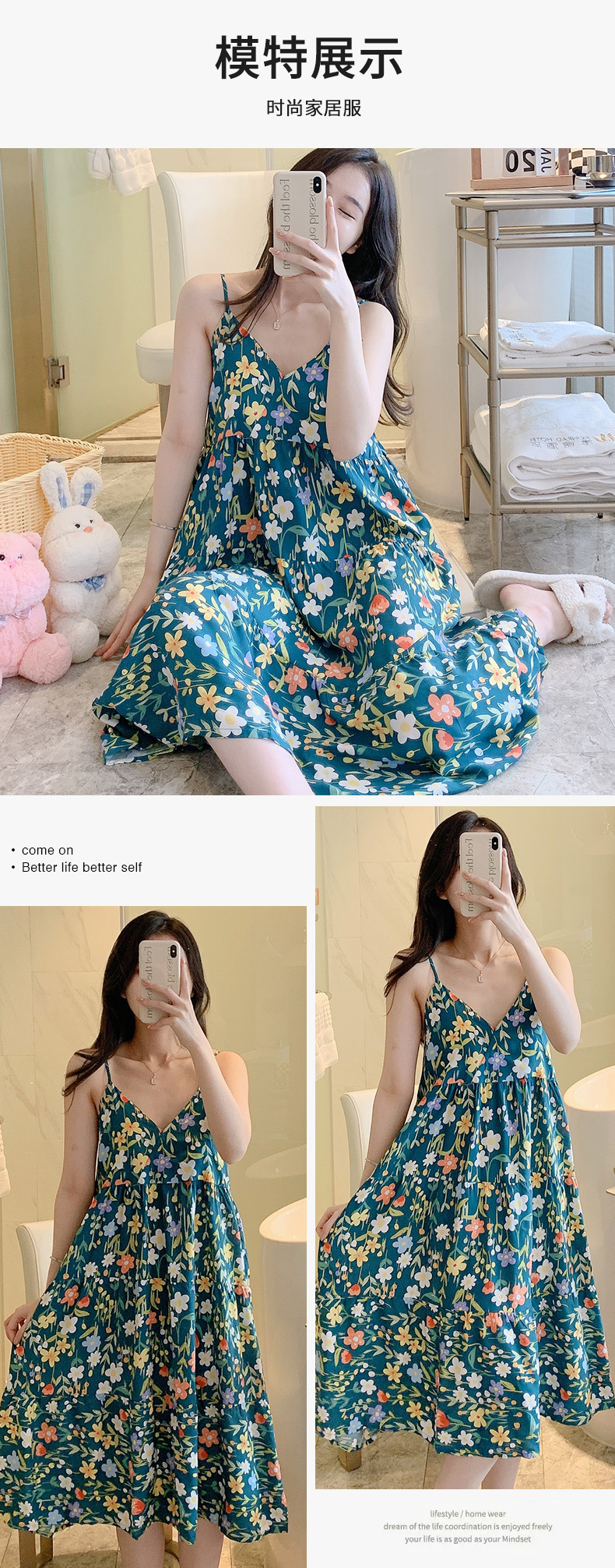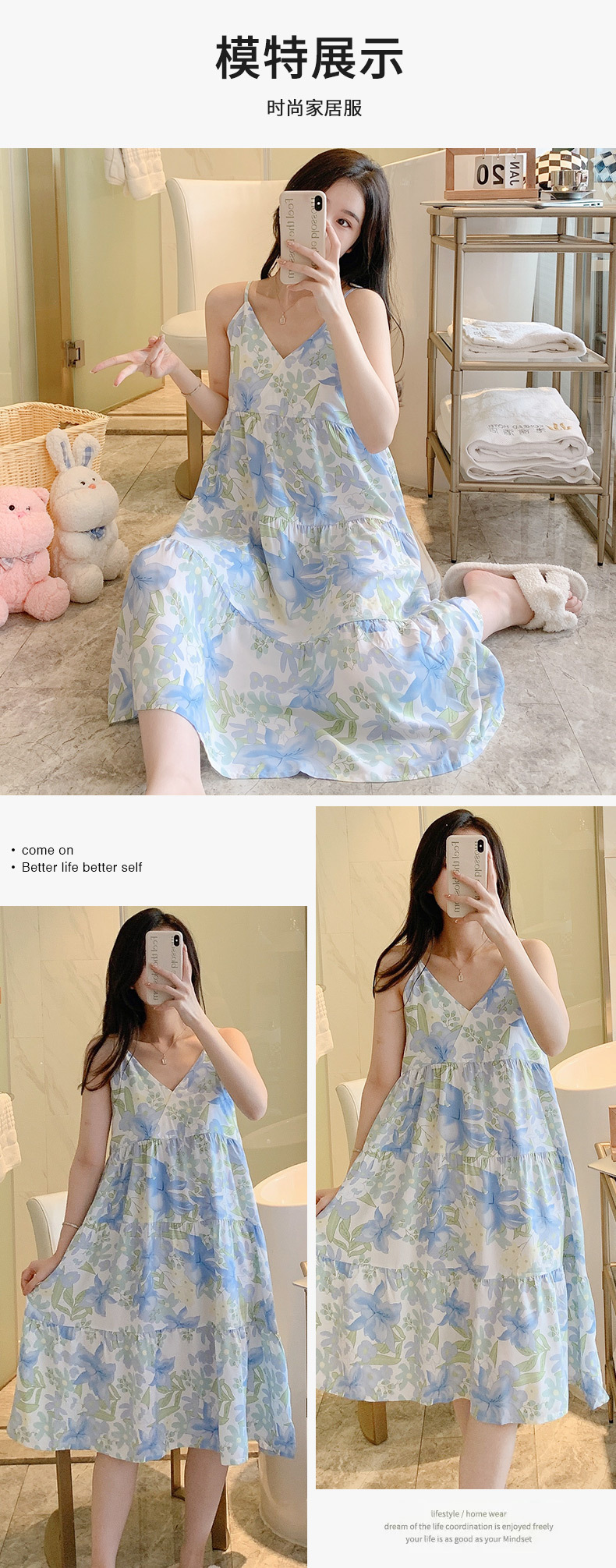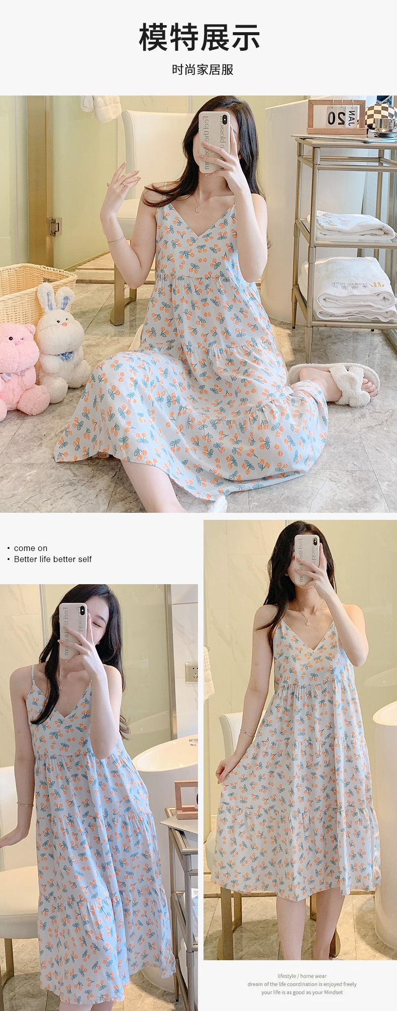 슬링 면 실크 잠옷 여자의 봄과 여름 새로운 잠옷 가정 옷 일본 스타일 달콤한 소녀 학생 단색 면 실크 원피스스토어 가기