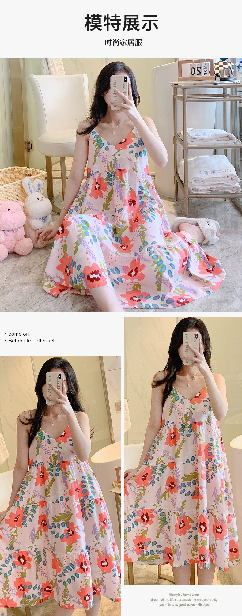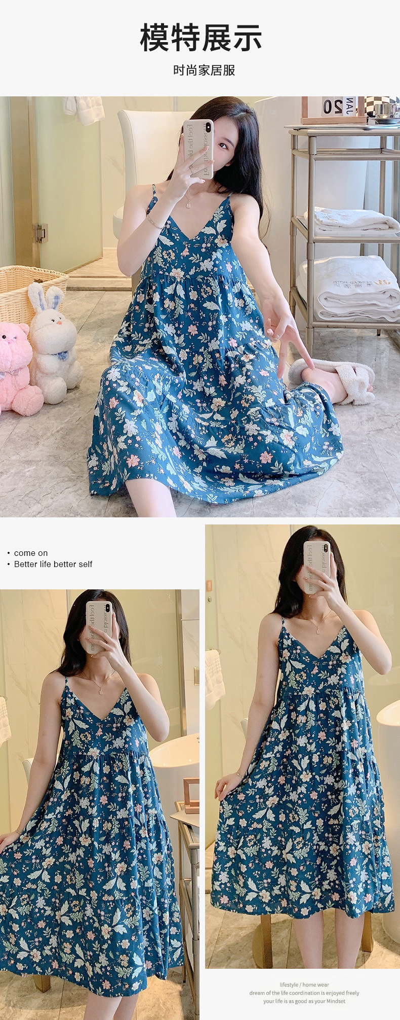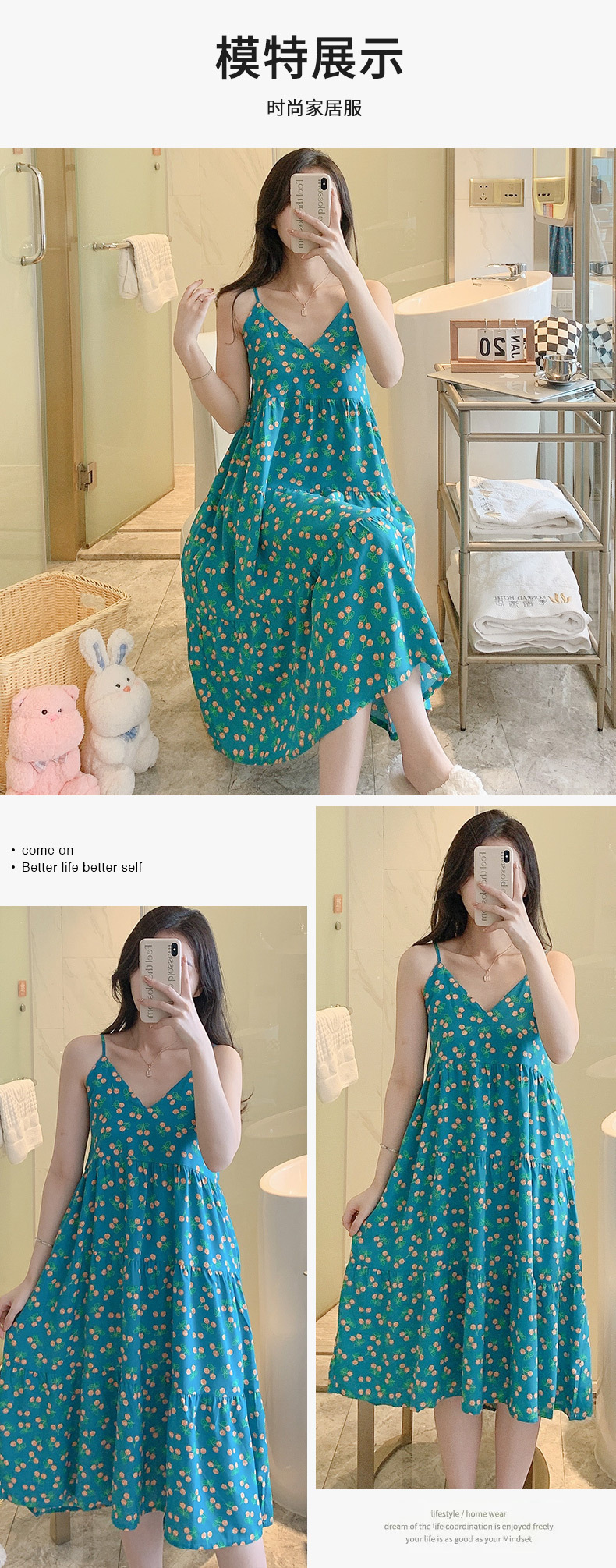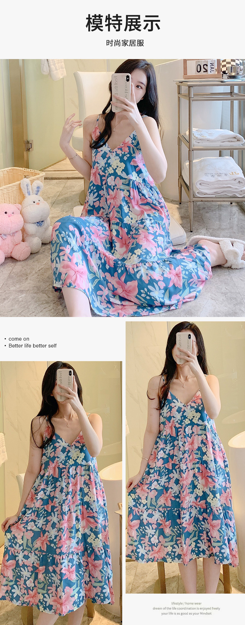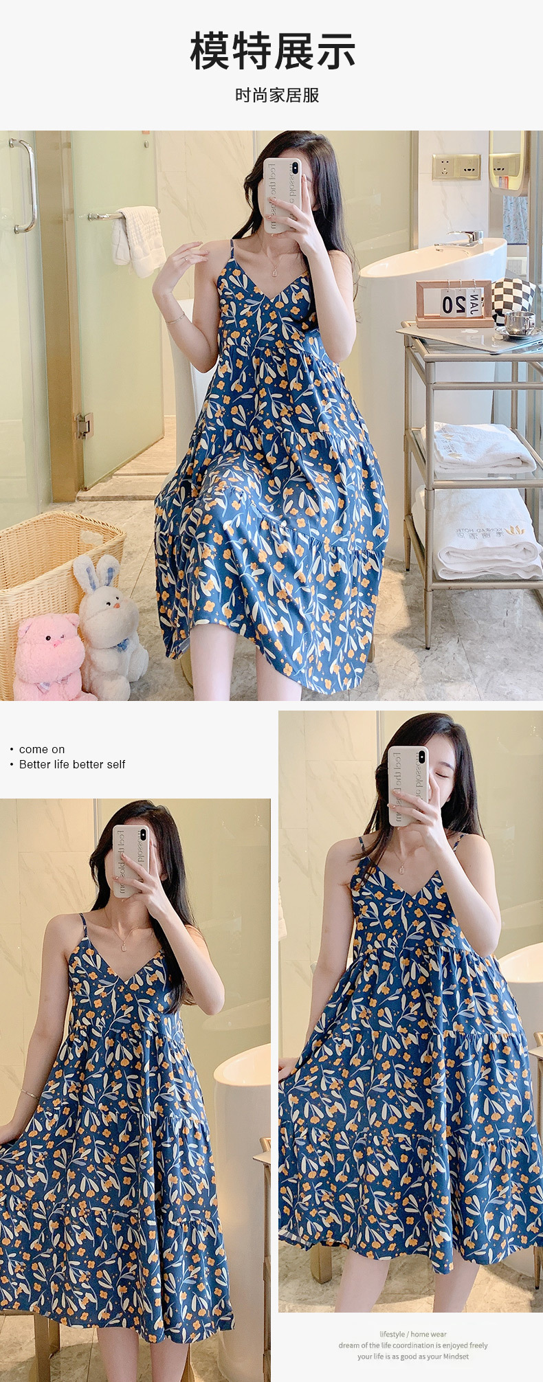 슬링 면 실크 잠옷 여자의 봄과 여름 새로운 잠옷 가정 옷 일본 스타일 달콤한 소녀 학생 단색 면 실크 원피스스토어 가기