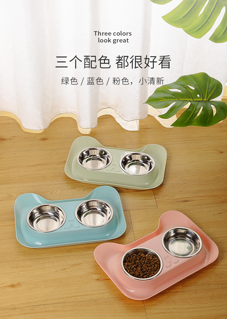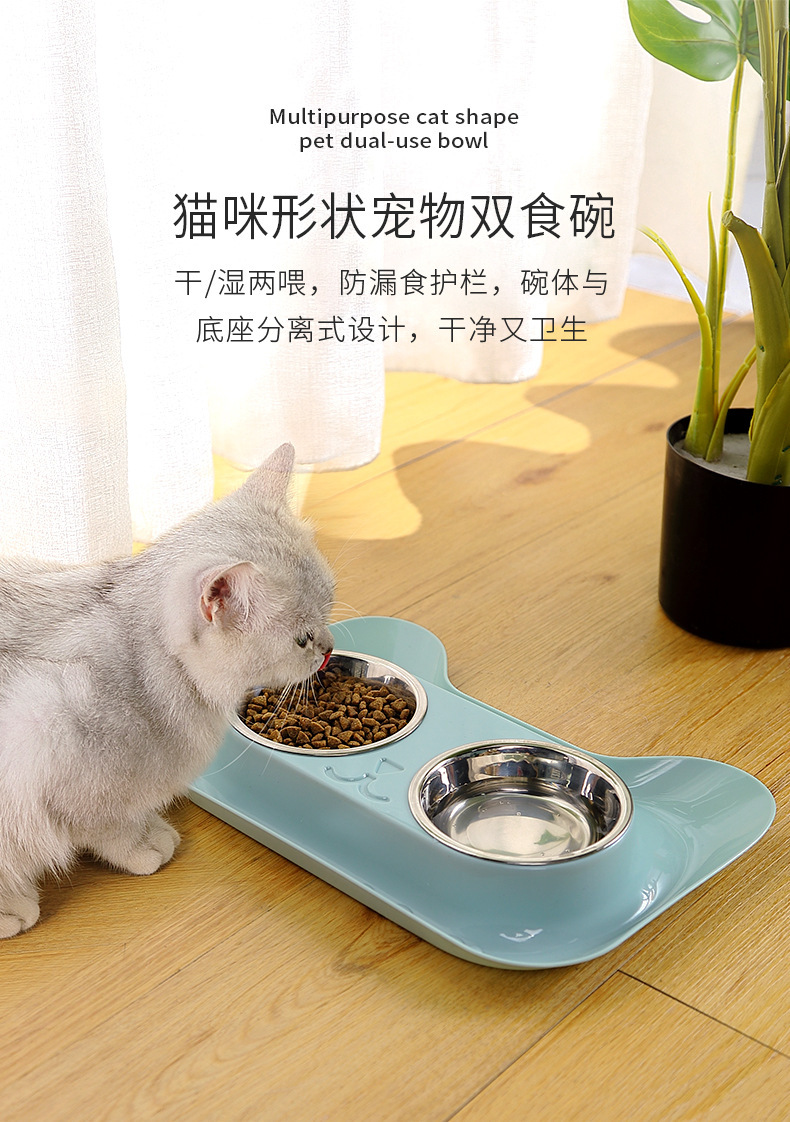 새로운 고양이 모양의 고양이 그릇 애완 동물 그릇 스테인레스 스틸 고양이 그릇 개 그릇 누출 방지 고양이 먹이 그릇 고양이와 개 마시는 그릇 도매스토어 가기