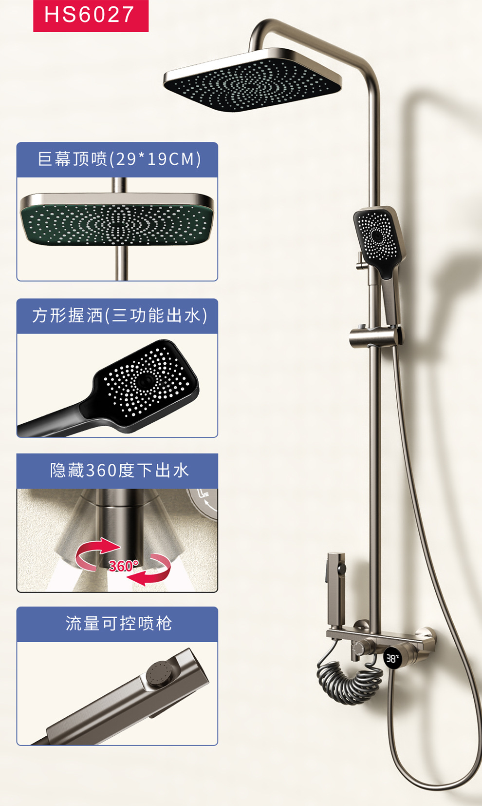 90,000 스프레이 건 회색 샤워 샤워 세트 욕실 디지털 디스플레이 모든 구리 샤워 샤워 부스터 샤워 세트스토어 가기