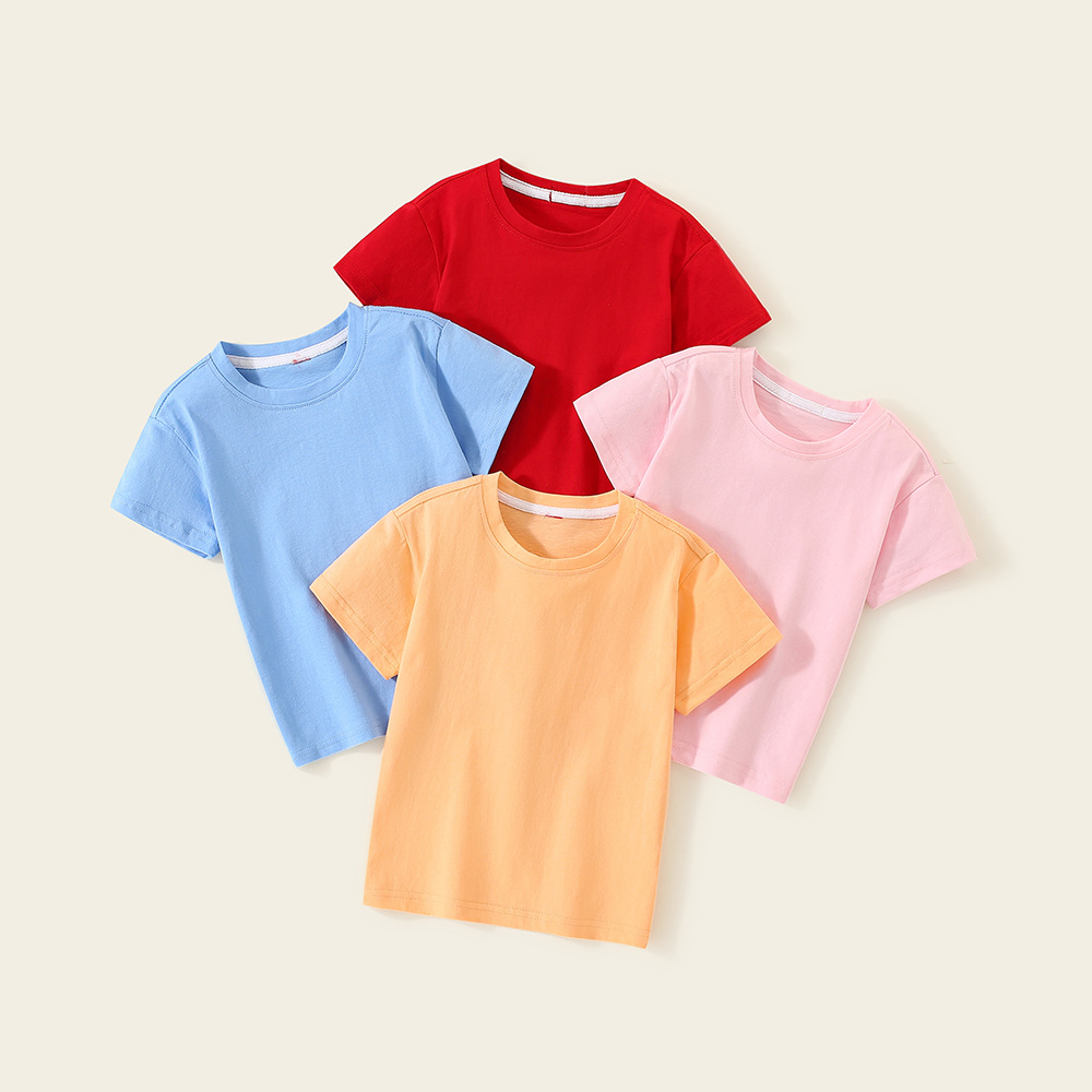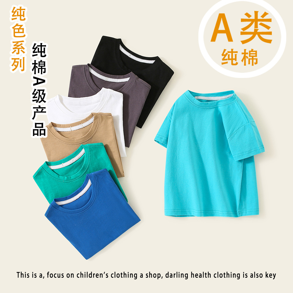 2023 여름 새 아동복 대외 무역 캔디 컬러 t 어린이 기본 단색 탑 소녀 모든 경기 코튼 티셔츠스토어 가기