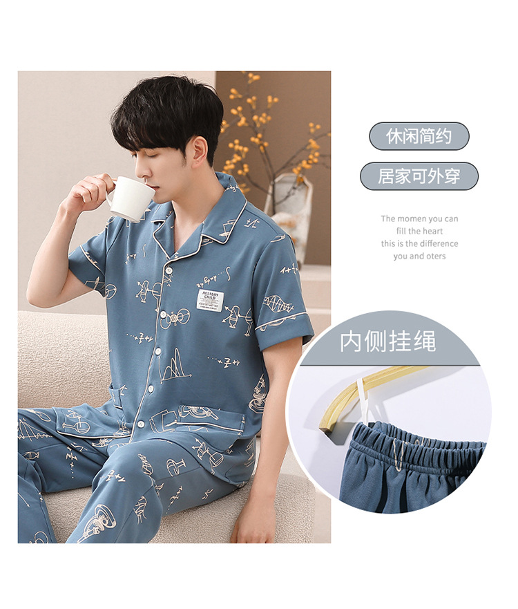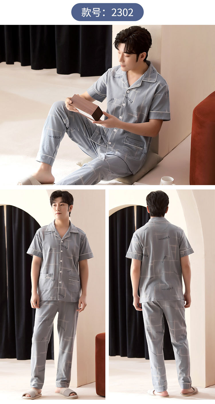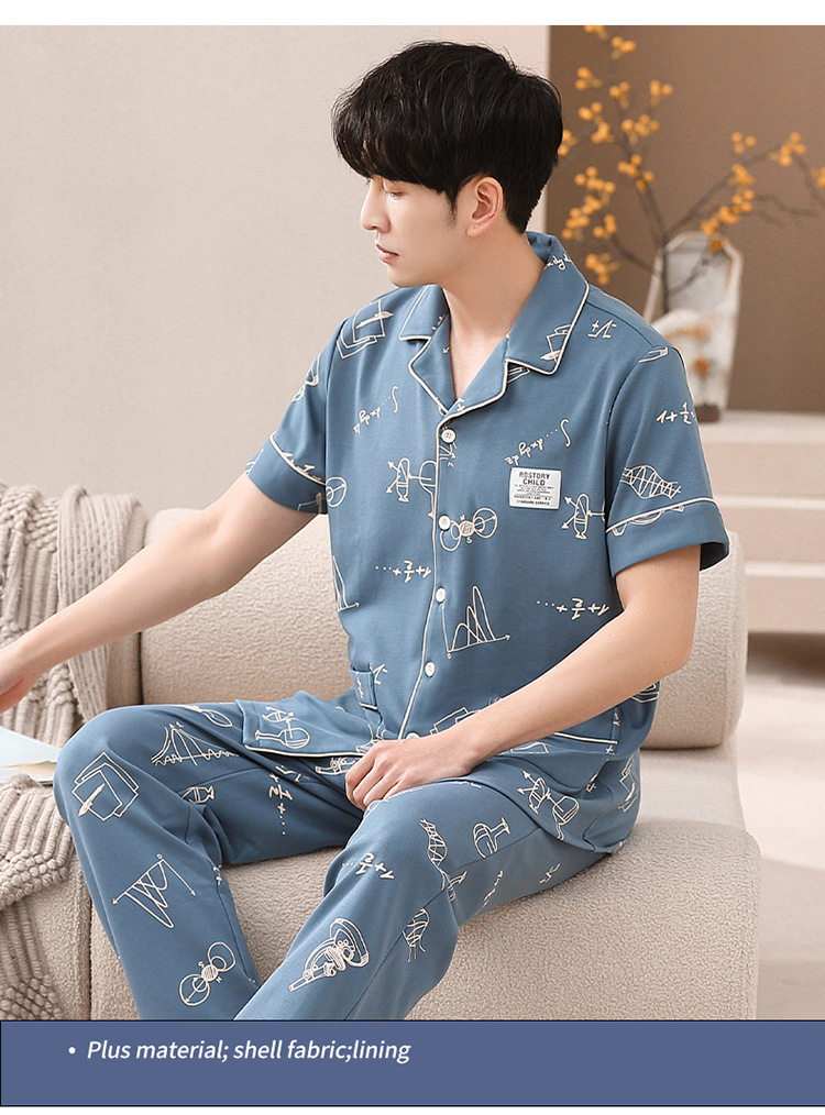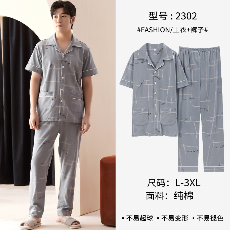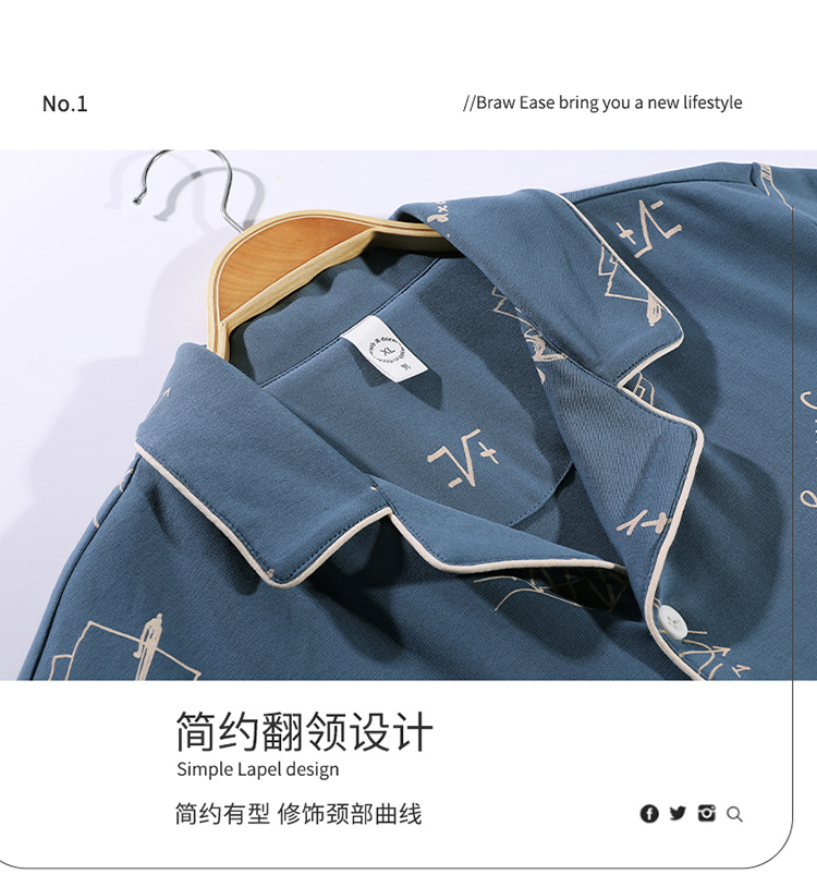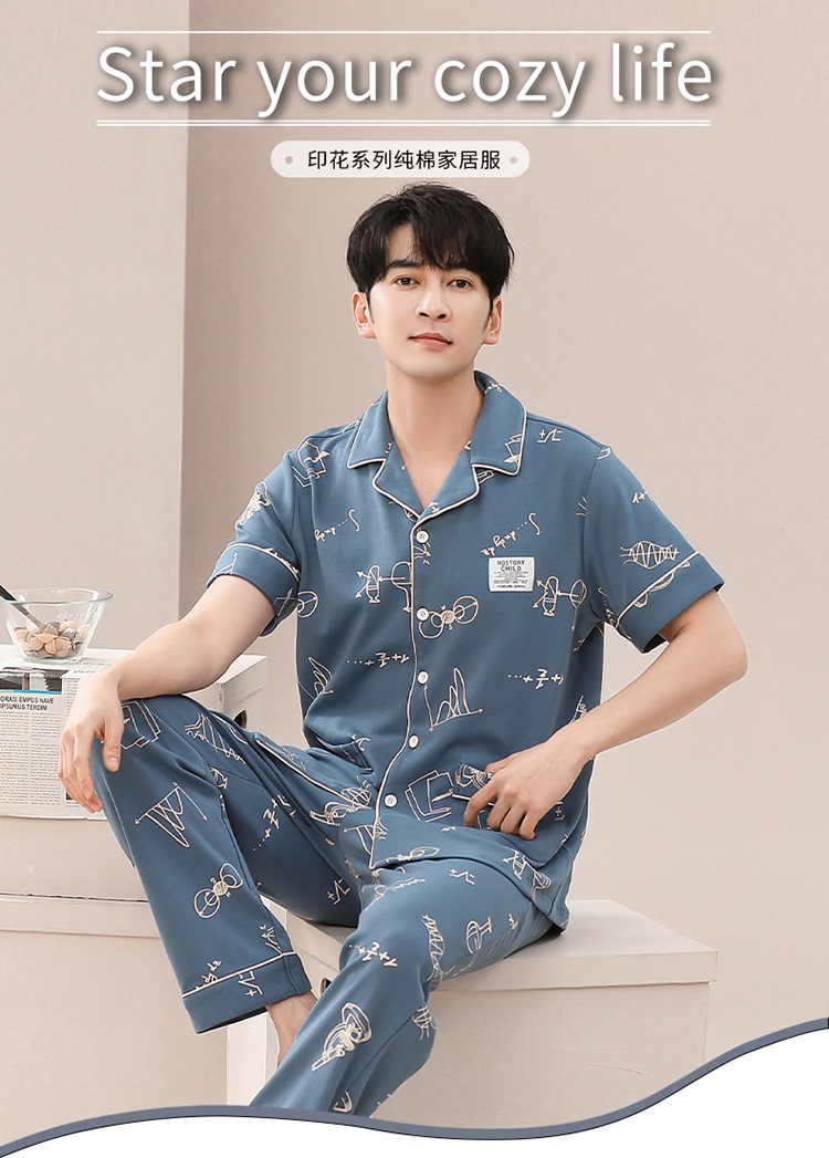 봄과 여름 고급 옷깃 면 긴 소매 간단한 어린 소년 홈 의류 세트 남성 잠옷 도매스토어 가기