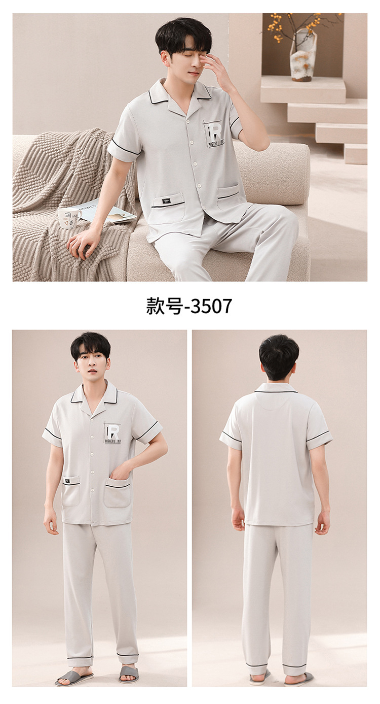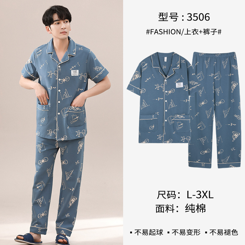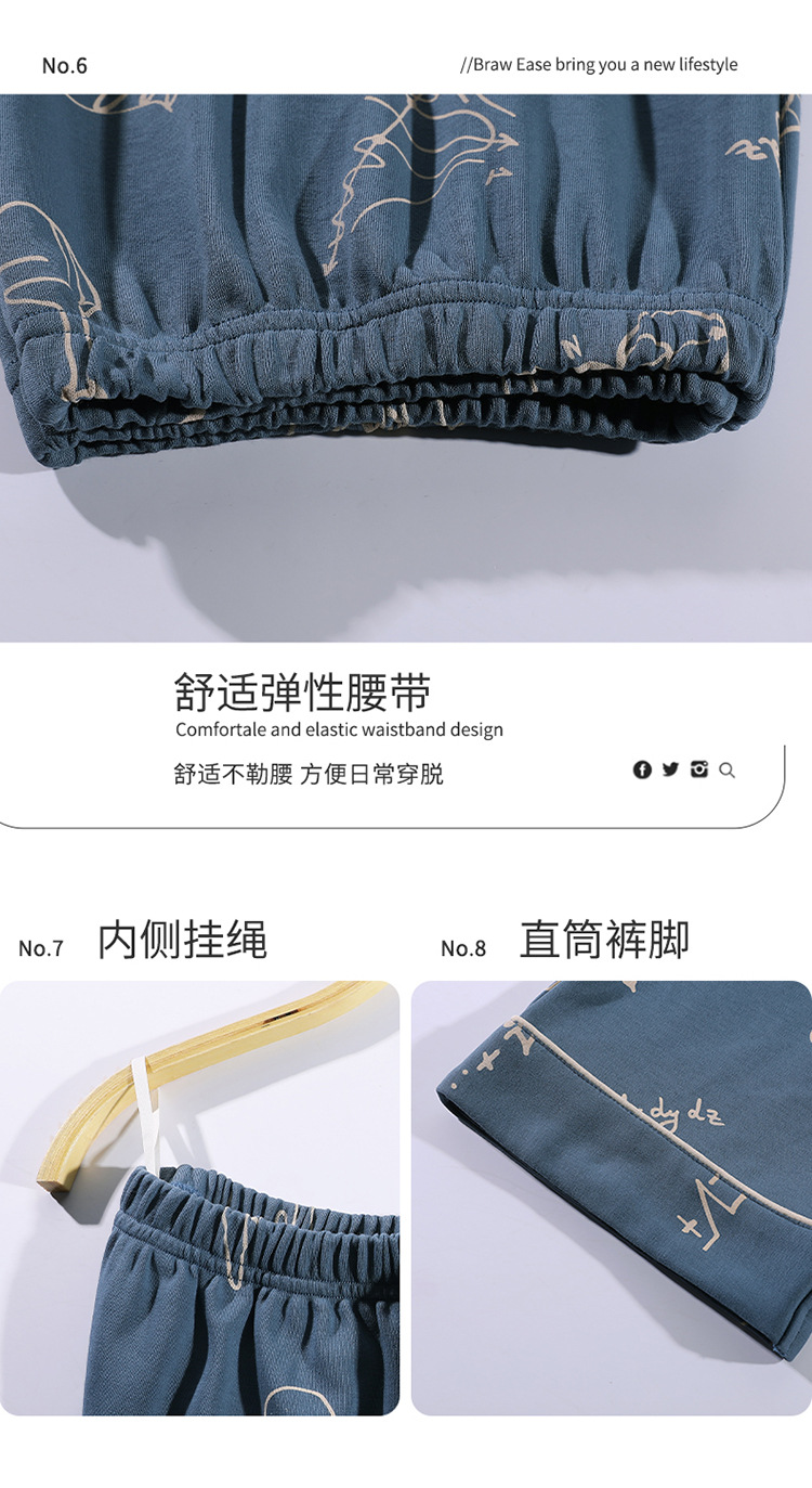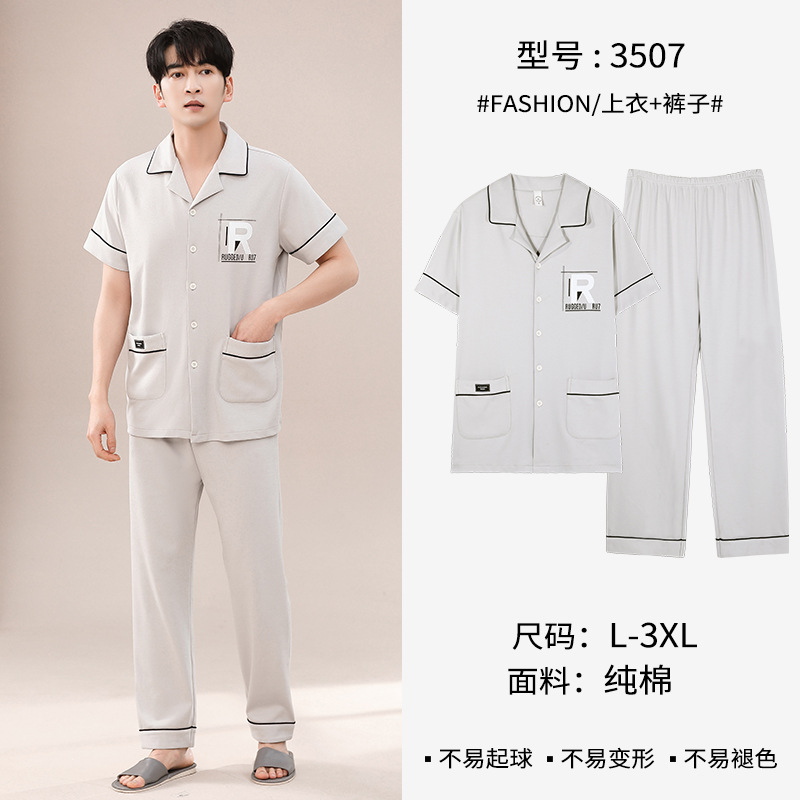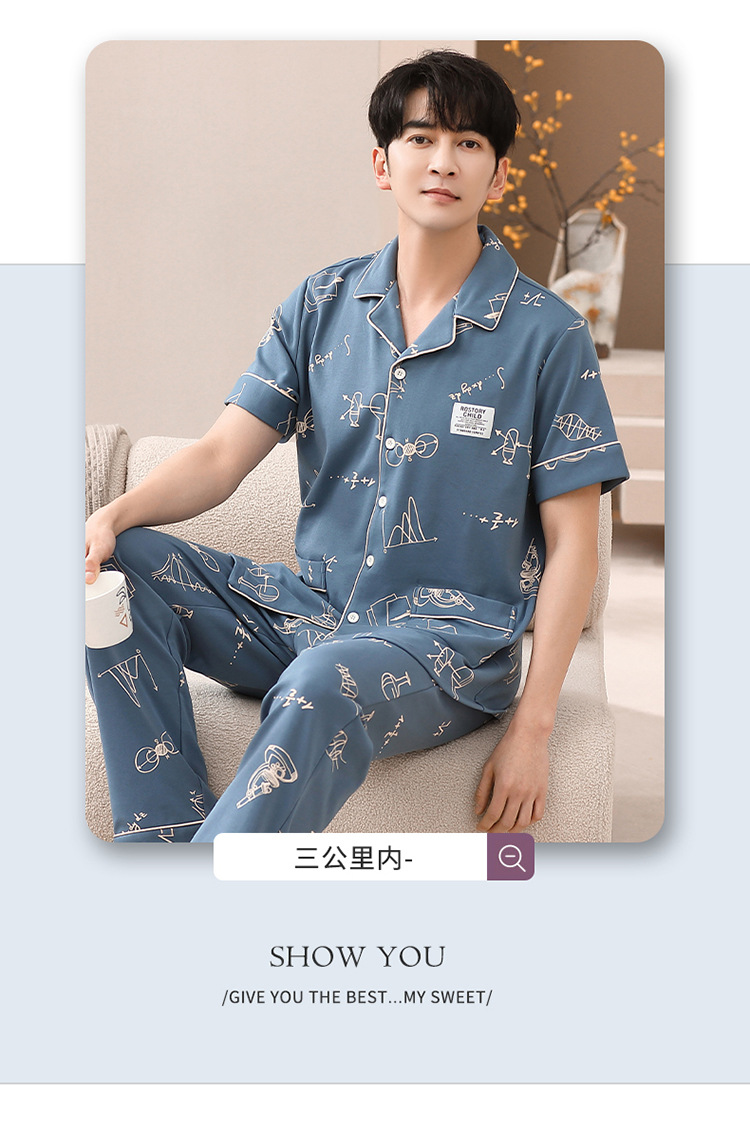 봄과 여름 고급 옷깃 면 긴 소매 간단한 어린 소년 홈 의류 세트 남성 잠옷 도매스토어 가기