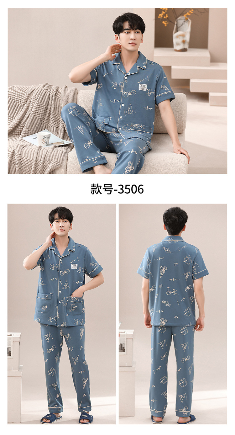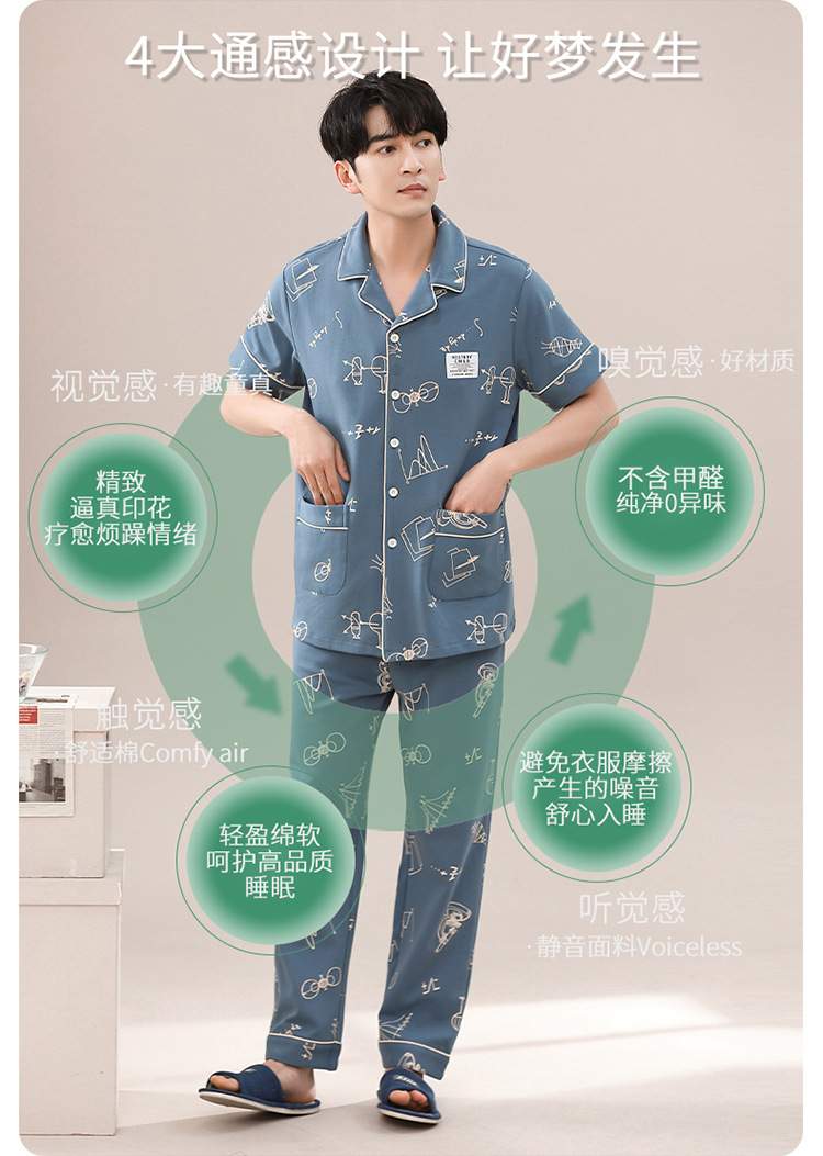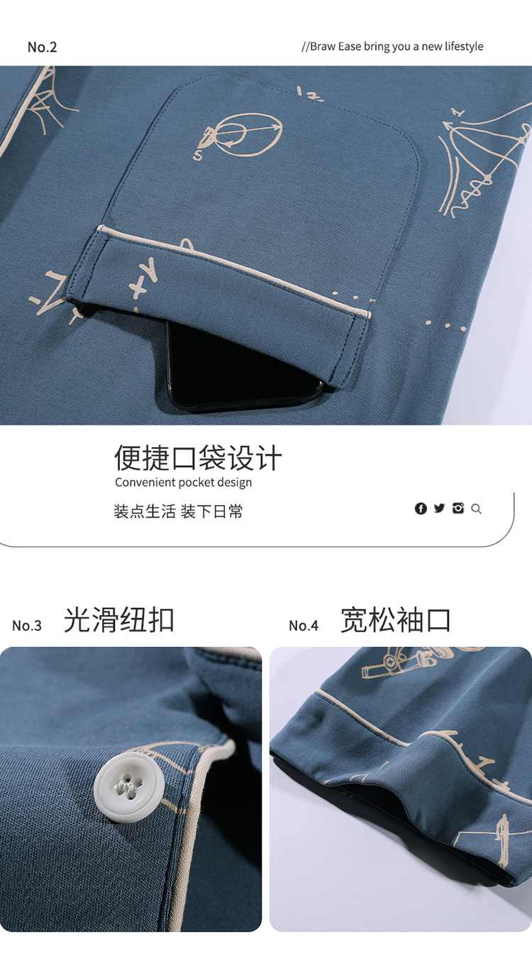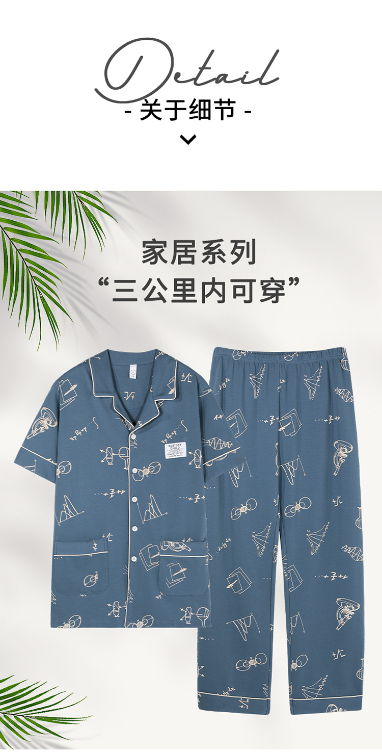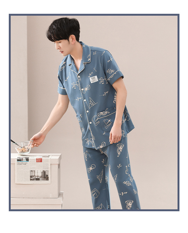 봄과 여름 고급 옷깃 면 긴 소매 간단한 어린 소년 홈 의류 세트 남성 잠옷 도매스토어 가기