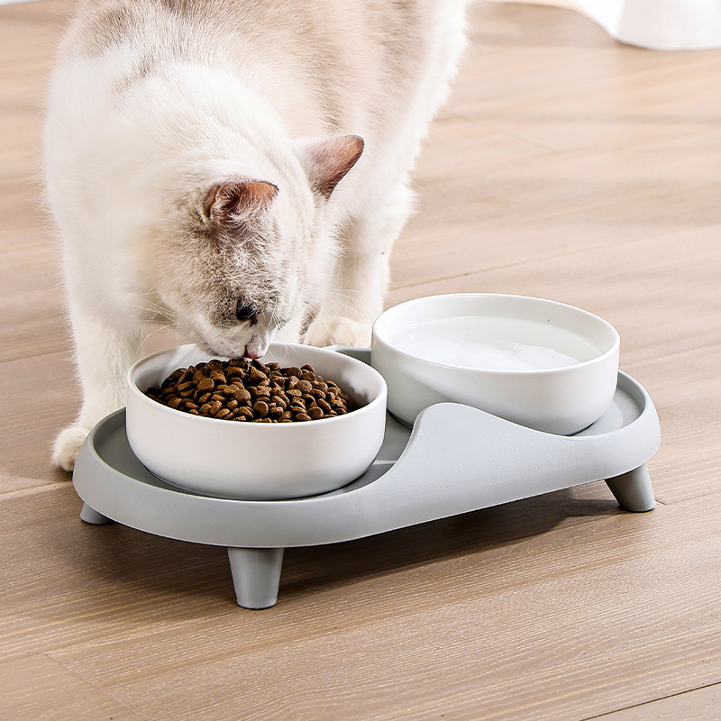 고양이 용품 고양이 그릇 세라믹 더블 볼 높은 발 목 보호 고양이 분지 미끄럼 방지 노크 방지 고양이 먹이 그릇 애완 동물 그릇 물 먹이 그릇