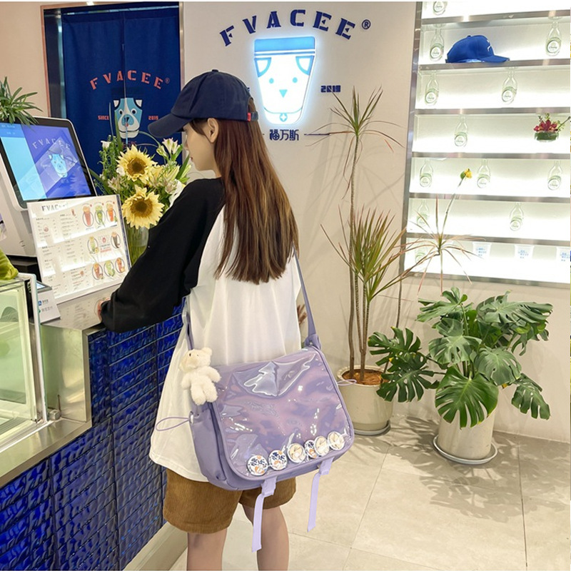 2026년 신형 대용량 크로스백 투명백 숄더백 소녀용 단색 플립백 학생용 가방스토어 가기