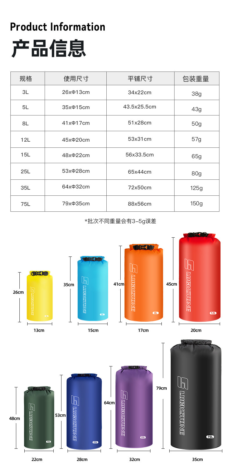 • 8 종 세트 (3L/5L/8L/12L/15L/25L/35L/75)