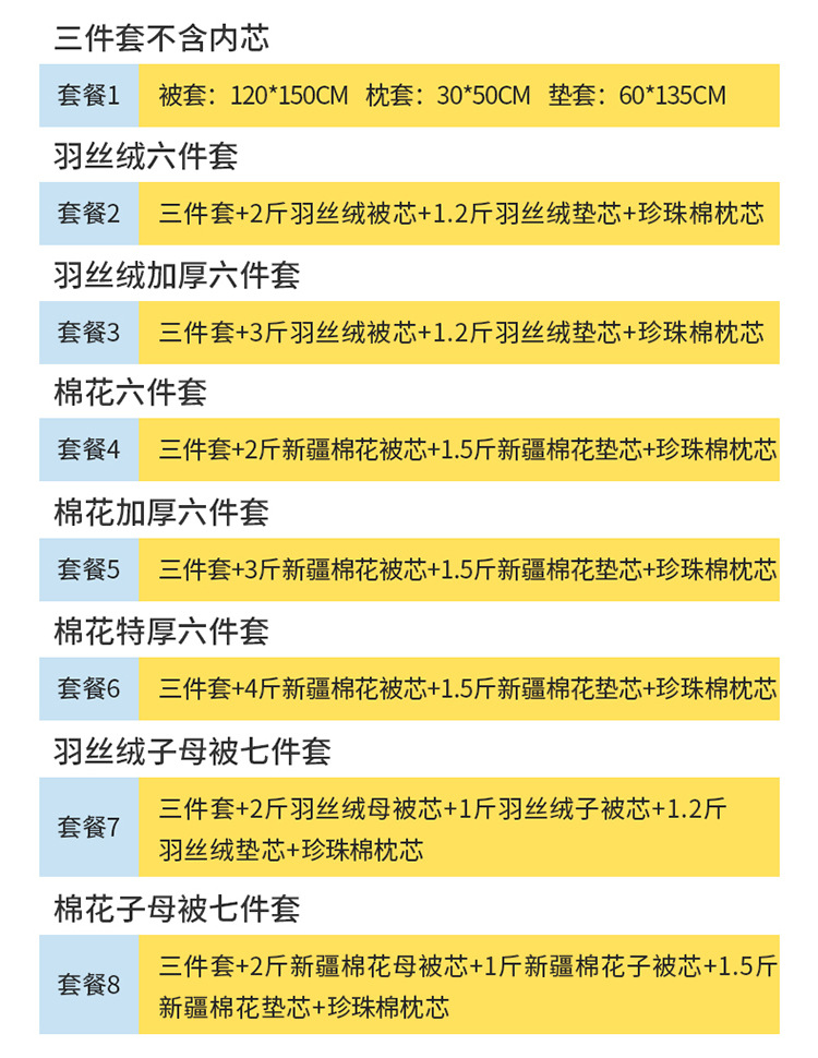 • 6 종 세트 (4kg 초두께 코튼 코어 초두께)