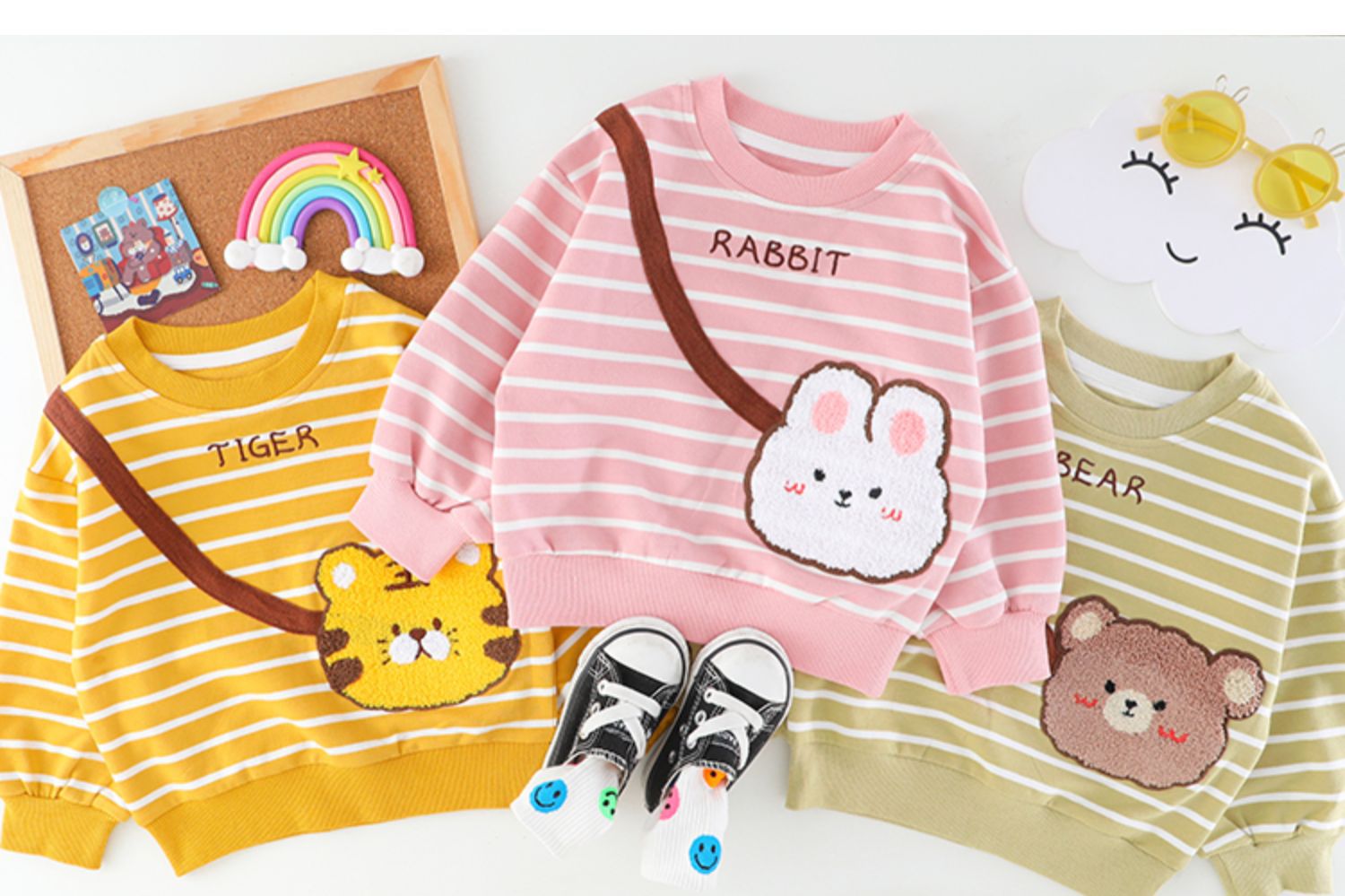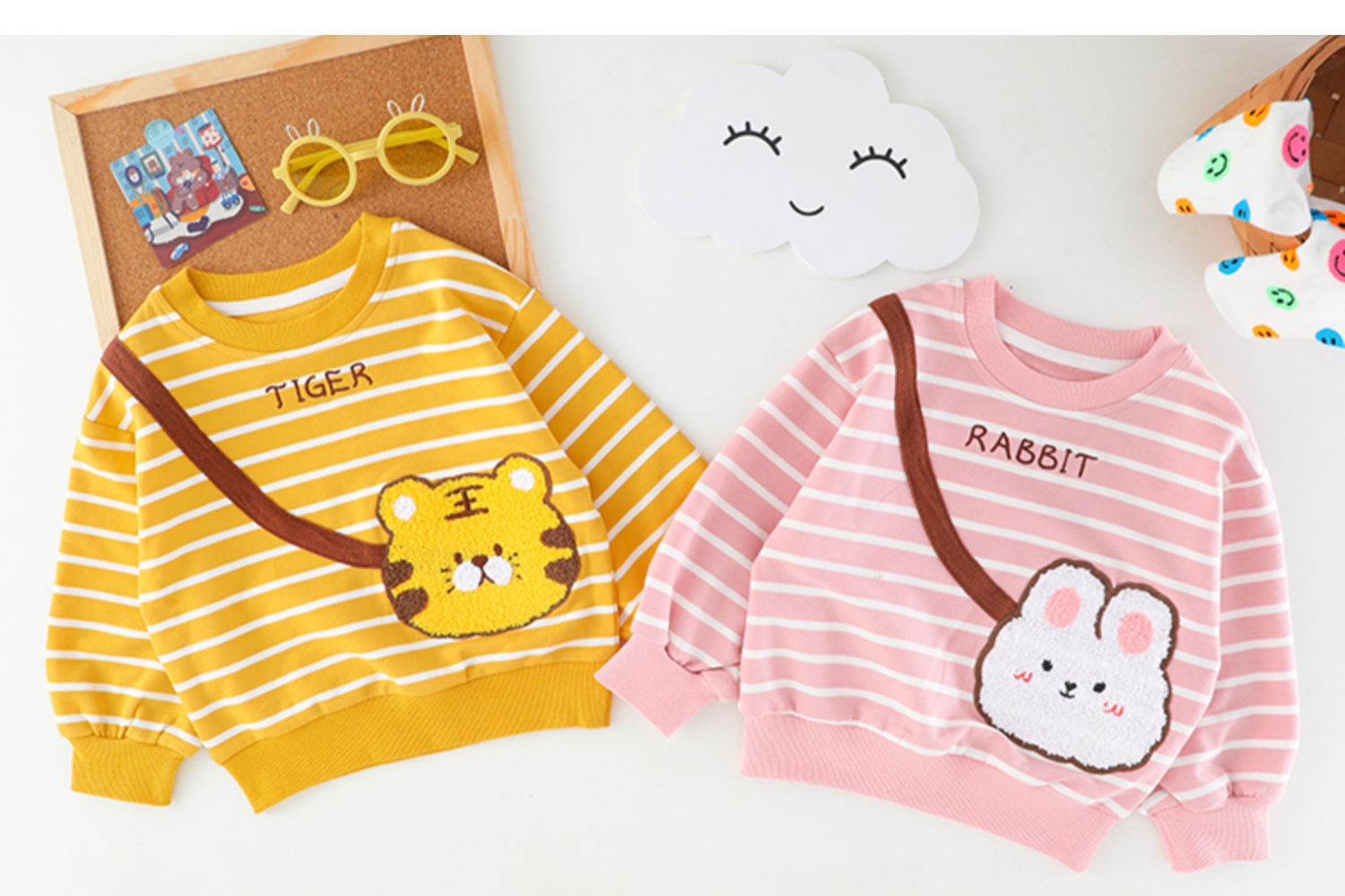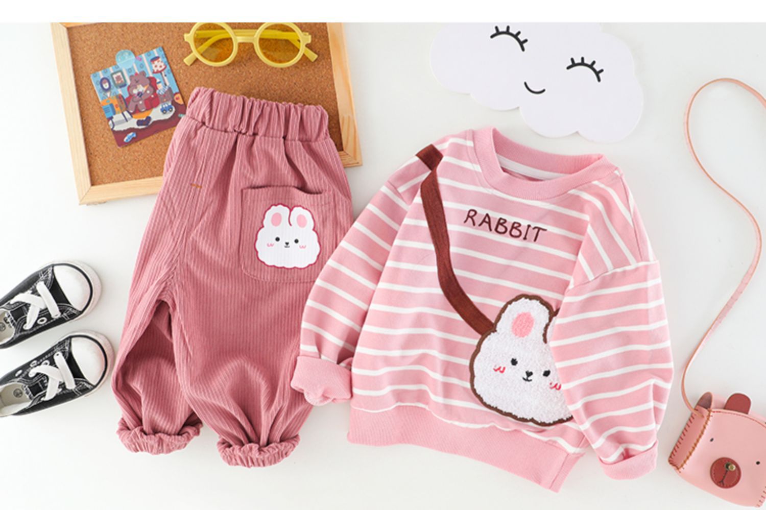 • 토끼 사첼 스트라이프 봄과 가을 세트 핑크