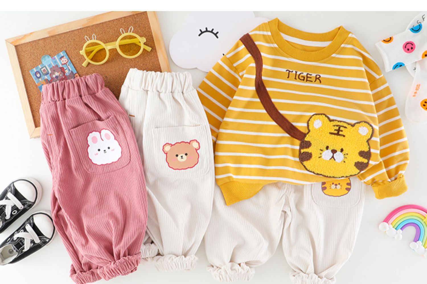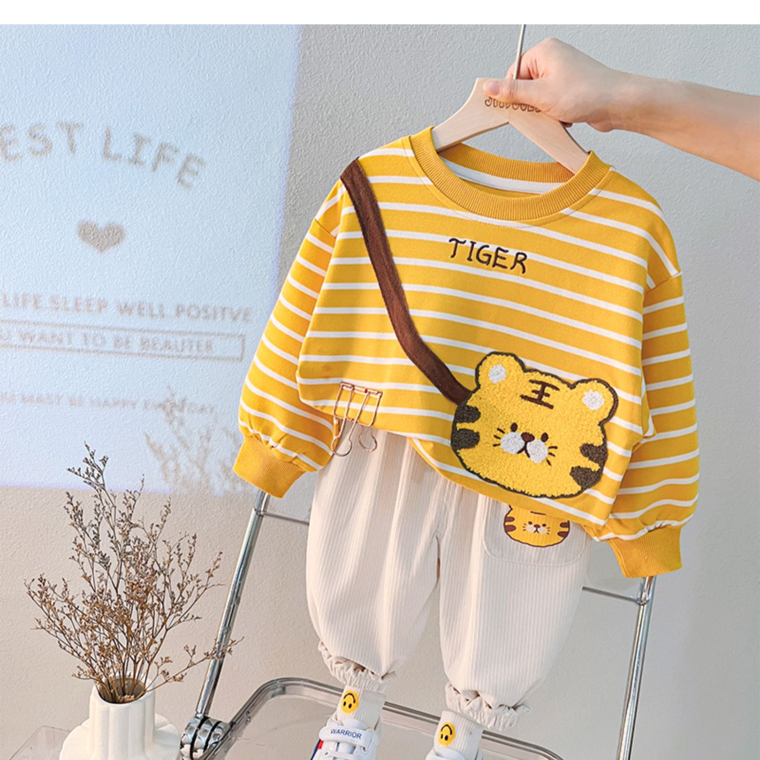 • 타이거 사첼 스트라이프 봄과 가을 세트 옐로우